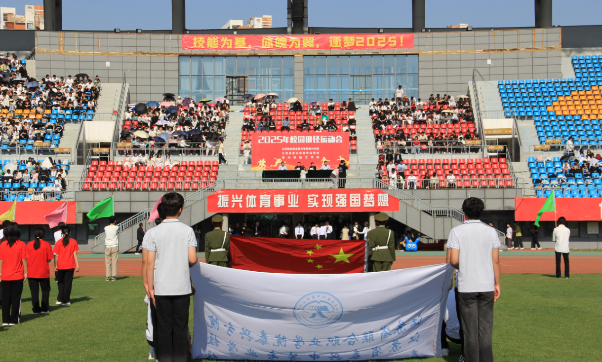 开幕式上,苏辉副校长发表致辞。他强调,此次运动会作为 2025 职教宣传周的重要组成部分,不仅是同学们展示个人才艺与体育技能的璀璨舞台,更是践行 “一技在手一生无忧” 职教理念的生动实践。它是培育健康体魄、强化团队协作精神、促进自我超越的宝贵契机,也是学校贯彻落实健康第一教育理念,实施学生体质强健计划的具体行动。希望大家能以此次运动会为契机,深刻理解 “技能成才,强国有我” 的使命担当,在运动与学习中不断成长。