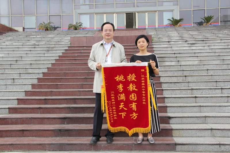 5月16日上午,学校大门口鞭炮齐鸣,烟花四射。16级单招班学生家长代表擎着一面“授教固有方,桃李满天下”红底黄字的锦旗,自发来到校园,郑重地赠送给学校。