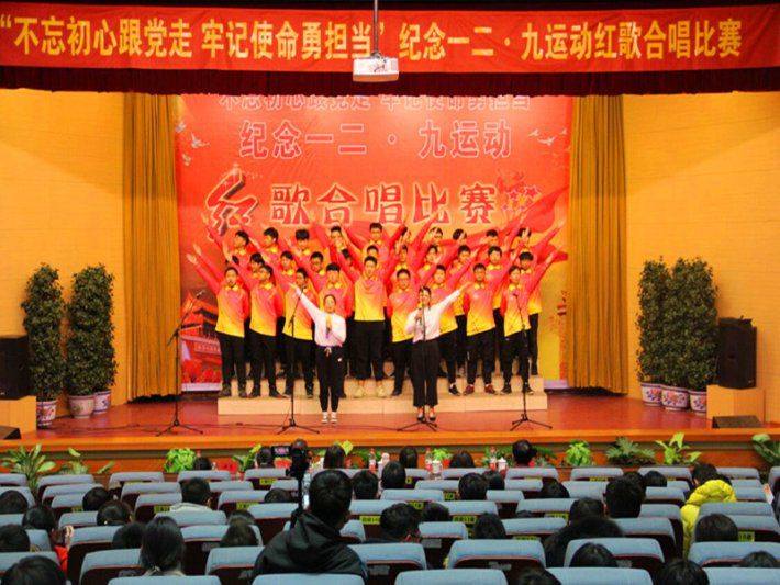 为纪念“一二·九”学生抗日救亡运动84周年,12月9日下午,我校举行了“不忘初心跟党走,牢记使命勇担当”爱国歌曲大合唱决赛。校领导何晨阳、丁金荣、刘正生、周勇及400多名师生共同观看了比赛。 经过初赛,全校共有16个班级进入决赛。为了能在比赛中取得好的成绩,每支参赛队在赛前都经过了精心编排,刻苦训练。比赛现场气氛紧张而热烈,得分丝毫差距都扣人心弦。《我和我的祖国》《歌唱祖国》《爱我中华》等一首首歌曲时而深情婉转,时而激情昂扬,整个比赛精彩纷呈、高潮迭起。 最终,经过激烈角逐,18工艺美术、18学前教育、19数控(联五)、19学前教育班荣获一等奖,19财会、17建工(联五)、19工艺美术、19施工3+3、18机械(1)获得二等奖,19轨道交通、17应用化工、18应用化工、16建工(联五)、19机电3+3、19精细化工、19电子(联五)获得三等奖。 本次爱国歌曲大合唱比赛通过“人人唱红歌,班班都参赛”的形式,有力推动学校校园文明建设,培育师生爱国情怀和团结进取的精神,激励广大师生在实现中华民族复兴梦的伟大征程中,迎难而上,奋勇拼搏,为学校争创“扎根江苏、引领全国、世界水平”的省领航学校贡献更大的力量!