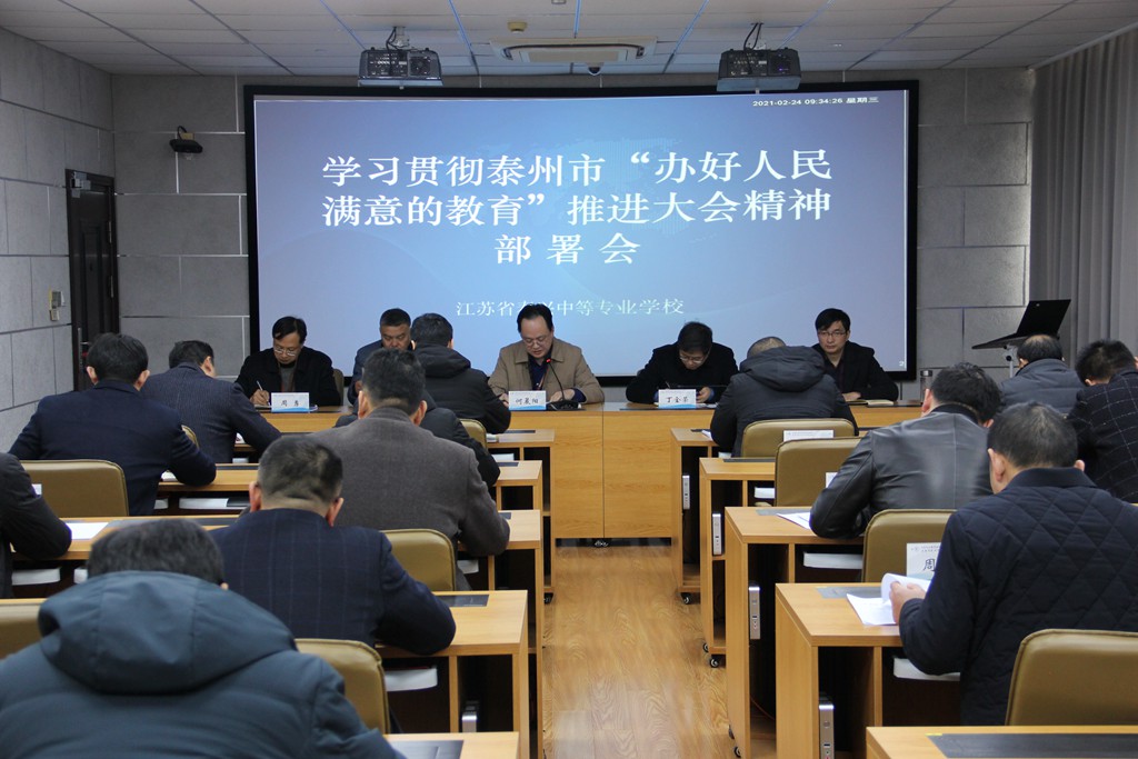 2月24日上午,我校在图文信息楼11楼多功能室召开了学习贯彻泰州市“办好人民满意的教育”推进大会精神部署会。学校领导班子成员、各部门负责人参加大会。