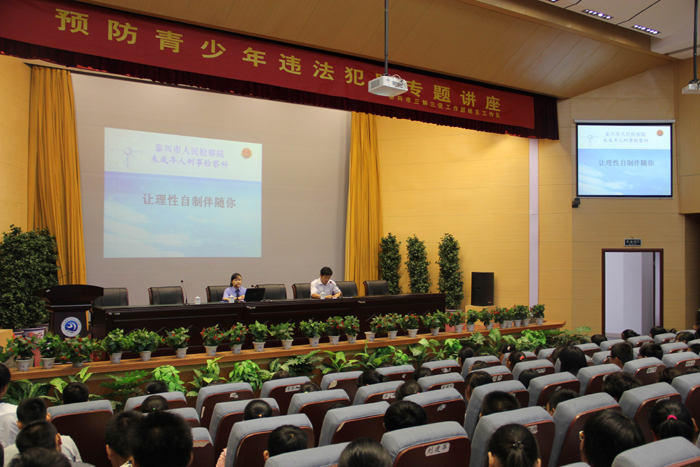 ![]() 泰兴市“三解三促”工作团成员、泰兴市人民检察院黄姣科长作了《预防青少年违法犯罪》的专题讲座。她列举了发生在学生身边的鲜活案例,讲解生动形象,富有法理。讲座教育新生们要学法、知法、懂法,学会用法律武器维护自己的合法权益;学会理性处理生活中的小矛盾,宽容别人,提高自控能力,不要盲冲行事;学会理性与人相处,谨慎交友,不要良莠不分;学会理性上网,有所取舍,不要盲目模仿,沉醉在虚拟世界。