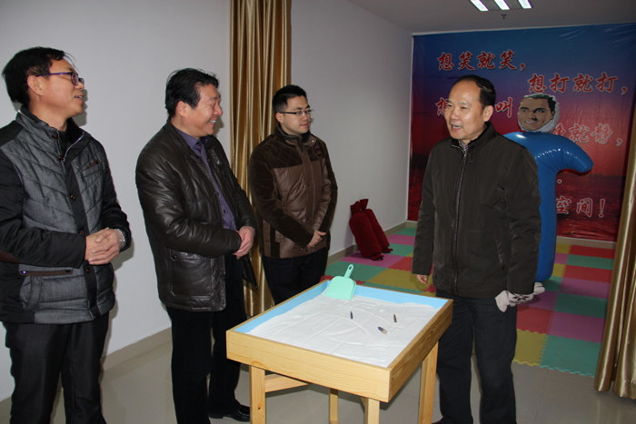 “阳光苑”心理咨询中心是泰兴市未成年人心理辅导基地,省文明卫生城市创建检查组成员对基地接待室、心理咨询室及沙盘室、心理宣泄室和团体辅导活动室等各个功能室及工作流程进行了详细了解,并检查了有关台账资料。检查组成员对中心所开展的工作及取得的成绩表示赞赏,同时对功能室的部分设施摆布提出了合理建议。