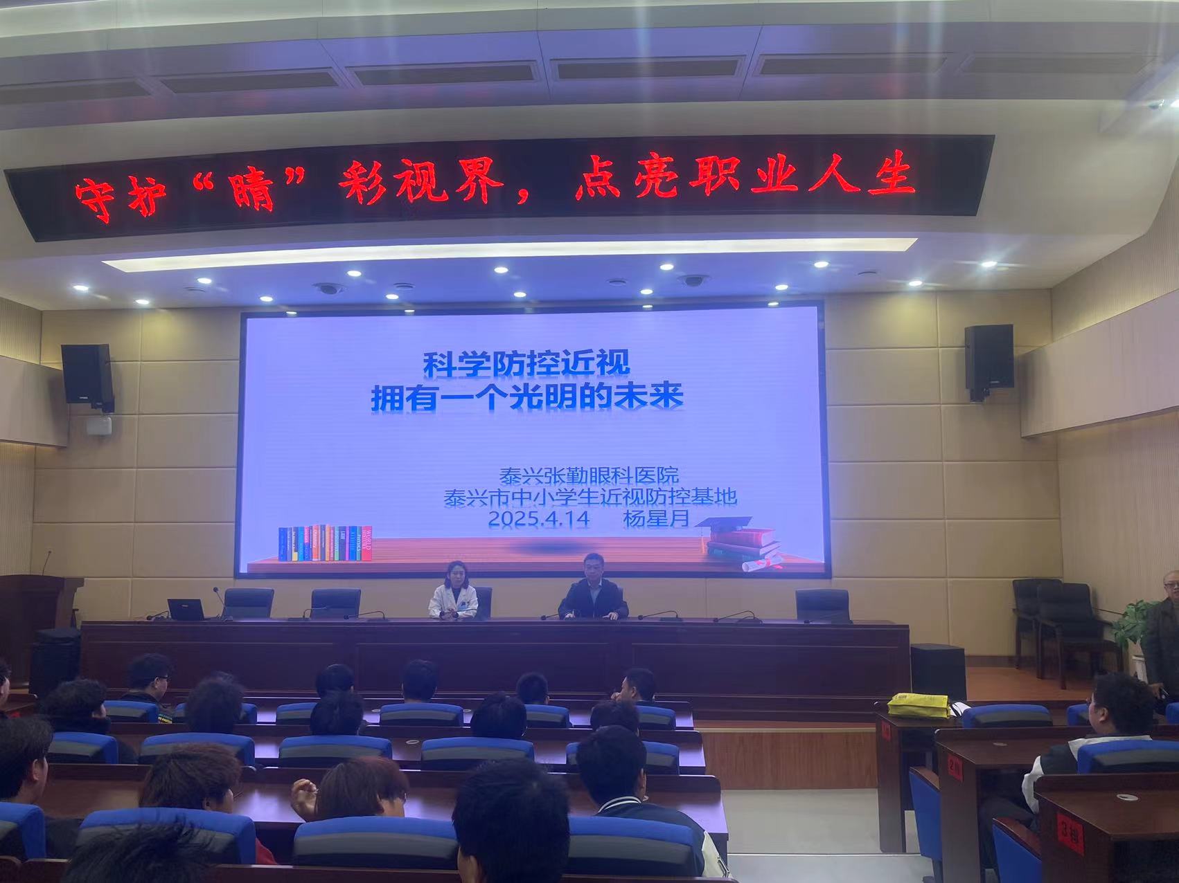 4月14日下午两节课后,我校在知行厅举办“科学防控近视 拥有一个光明的未来”主题讲座。活动特邀泰兴张勤眼科医院一级验光技师、国际角膜塑形学会亚洲分会(IAOA)会员杨星月主任担任主讲人,为师生带来一场兼具专业性与实用性的护眼知识讲座。