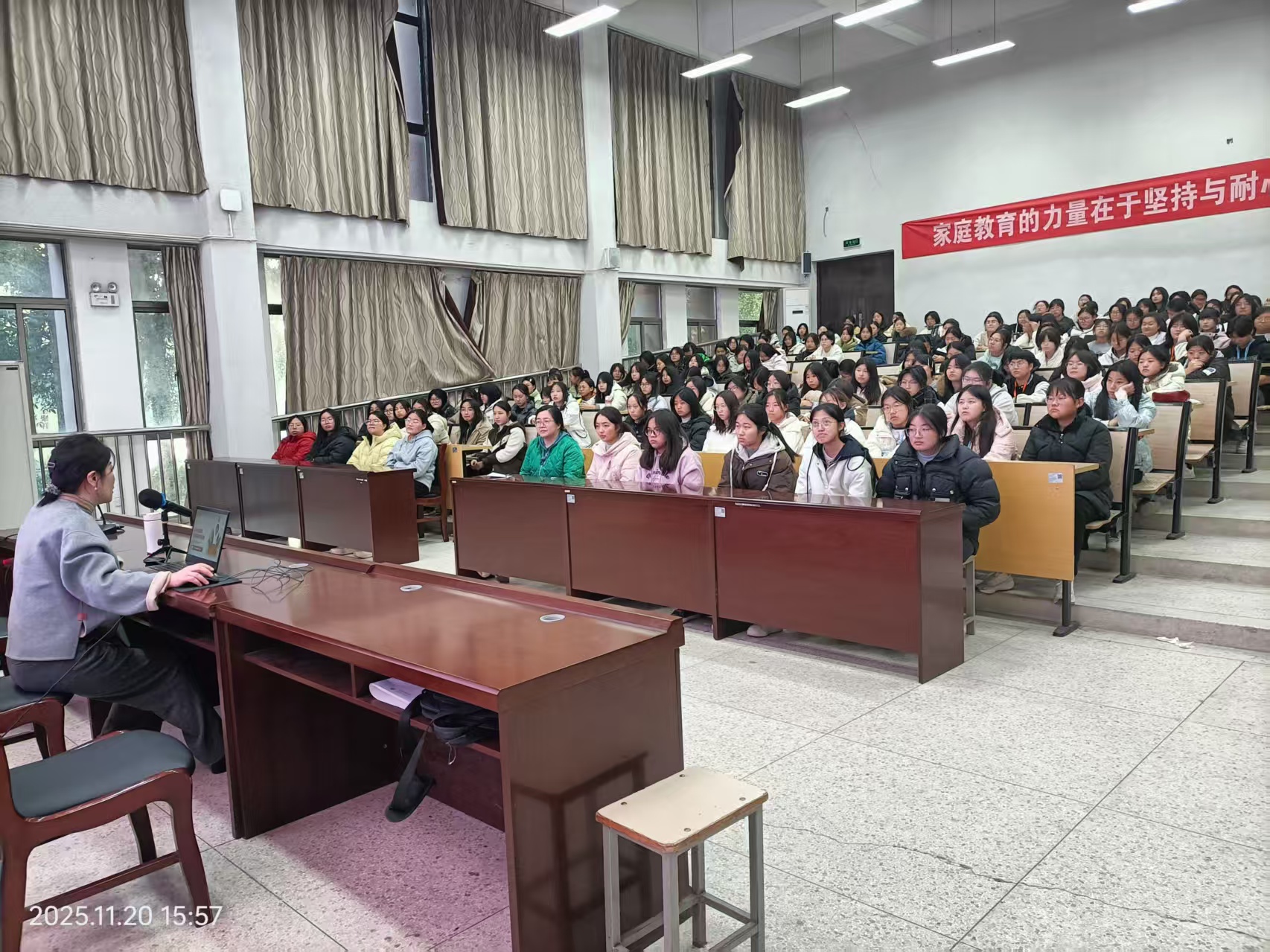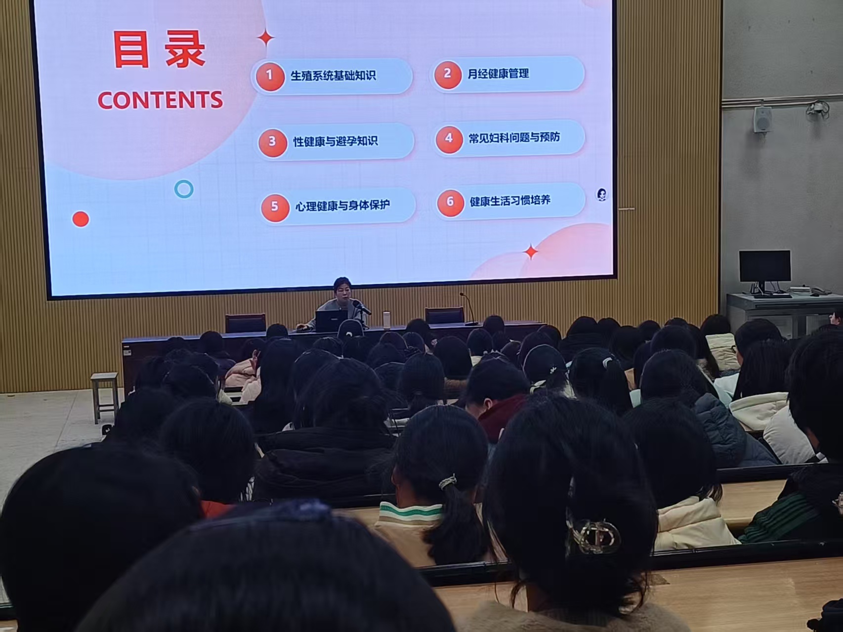 讲座中,肖医生围绕女性青春期的常见健康问题,深入浅出地讲解了相关知识和保健方法,为在场的女生提供了一场实用的健康指南。内容贴近实际,实用性强,现场学生认真聆听,反应较好。