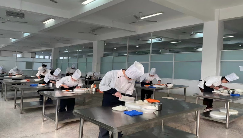 技能训练环节,学校依托烹饪、酒店管理实训场地,邀请企业专家与技术能手入校指导,传授实操标准与专业技艺,全面提升学生岗位实战能力。