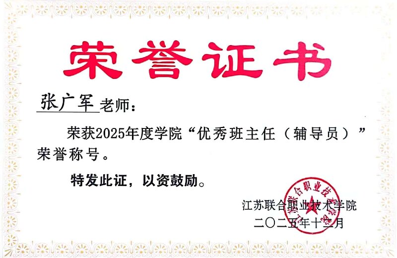 根据学院《关于表彰2025年度学院优秀班主任(辅导员)的决定