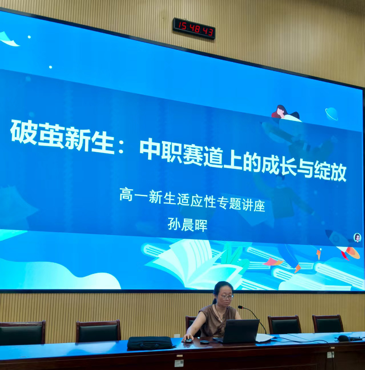 为帮助新生化解中考失利的心理阴霾,快速适应中职生活,明确未来发展方向,2025年9月3日下午,“阳光苑”学生成长发展中心按照学校工作部署,面向单招部25级新生举办以 “破茧新生:中职赛道上的成长与绽放” 为主题的入学心理讲座。讲座通过层层递进的内容分享,为新生们送上了一份兼具温度与实用性的 “成长指南”,主讲老师为我校专职心理健康教师孙晨晖。