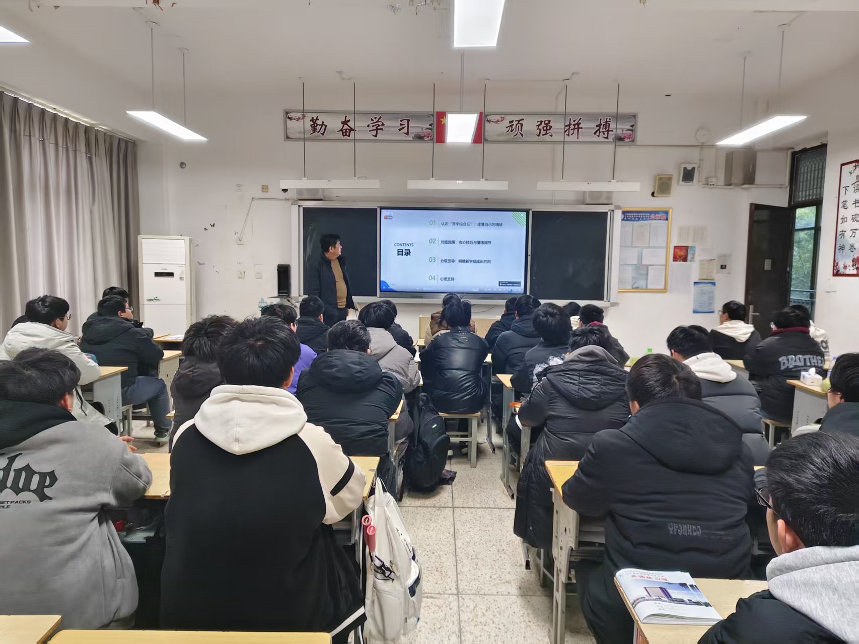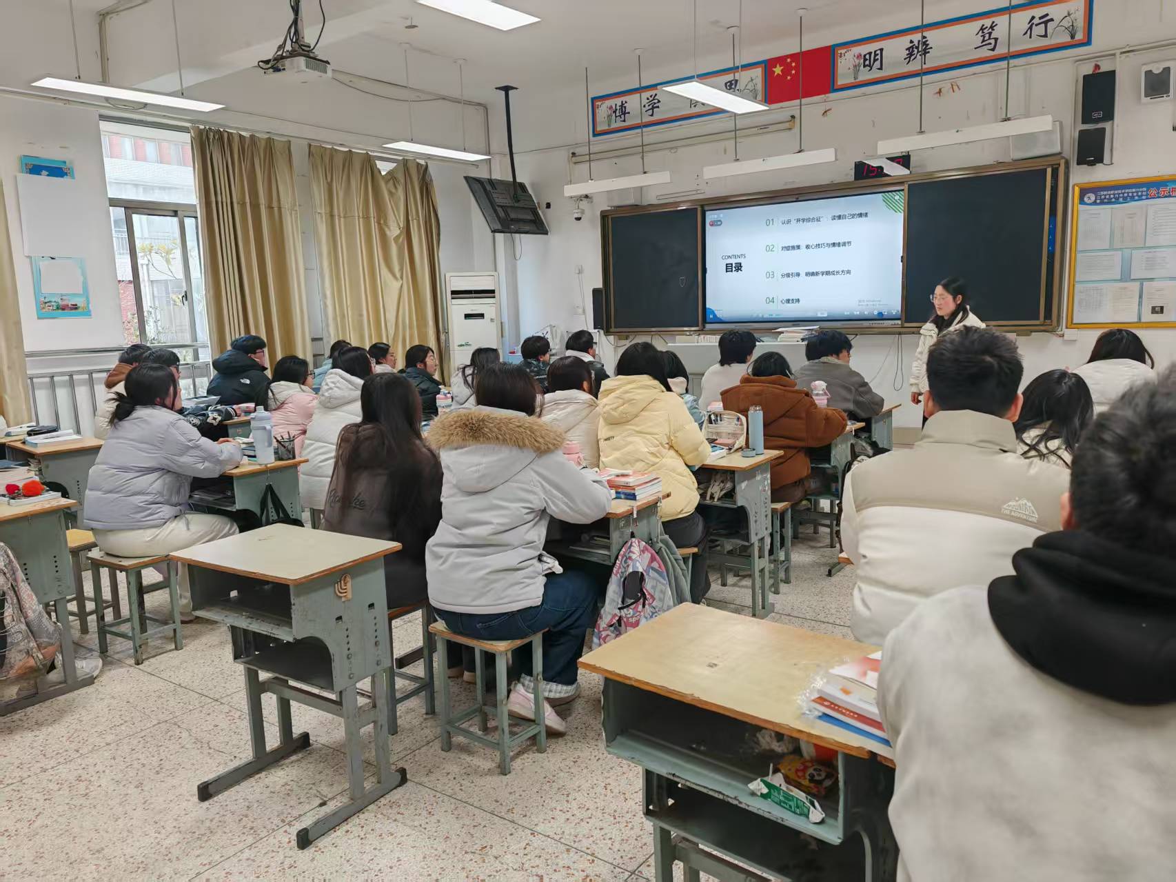 讲座围绕“开学综合症”展开科普,帮助学生认识情绪、接纳情绪,明确这是假期与校园模式切换的正常适应反应。孙老师结合中职生学习生活特点,讲解焦虑、作息紊乱、注意力不集中等常见表现与成因,用通俗语言引导学生自我觉察。