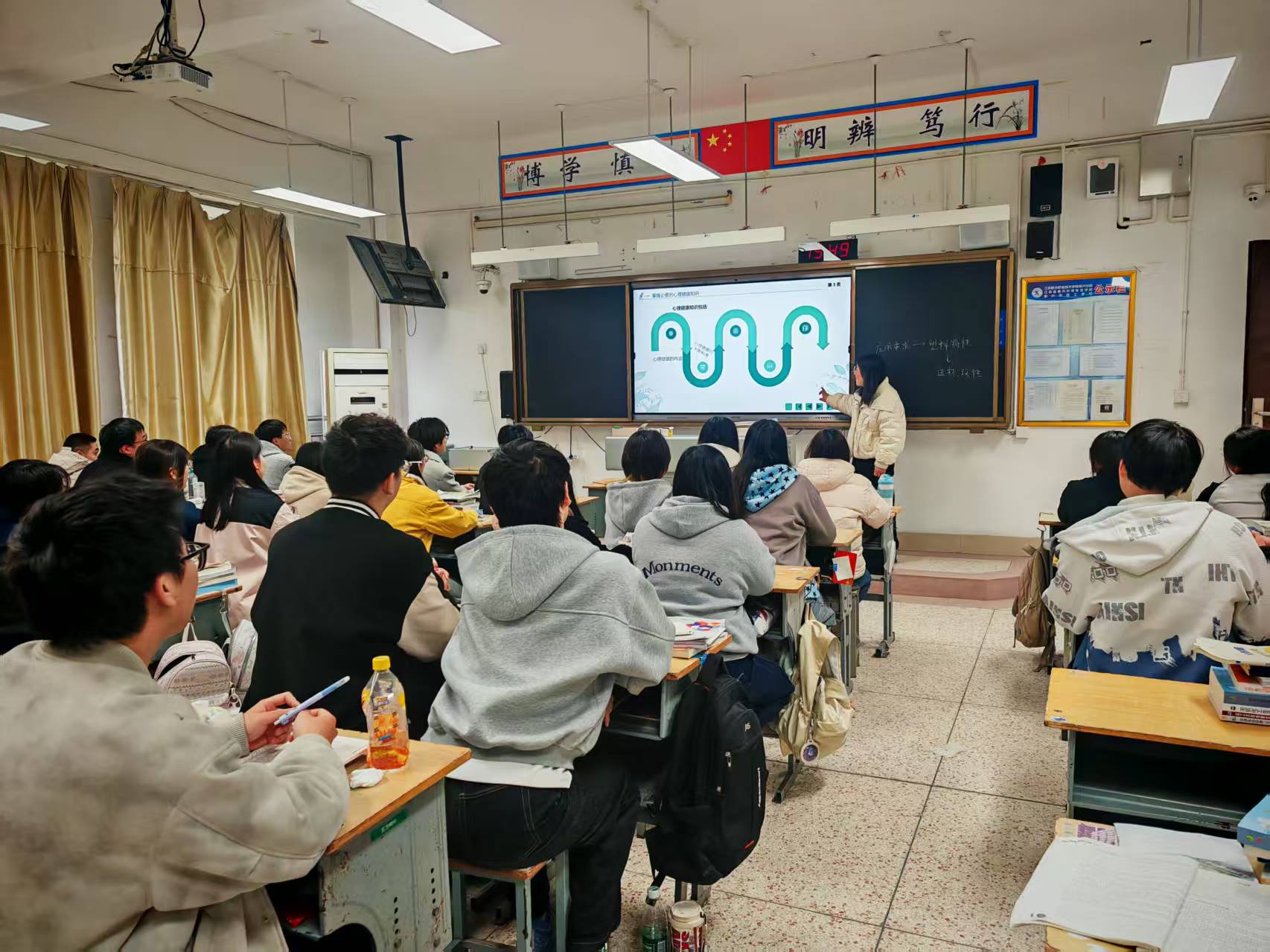 班会围绕六大核心内容展开,班主任带领同学们系统学习心理健康知识,清晰讲解心理健康内涵、判断标准及心理咨询、心理治疗的区别,帮助大家科学认知心理问题。同时,倡导同学们养成规律作息、合理饮食、劳逸结合的健康生活方式,主动融入班级、社团等集体活动,在互动中提升人际交往能力,构建和谐人际关系。