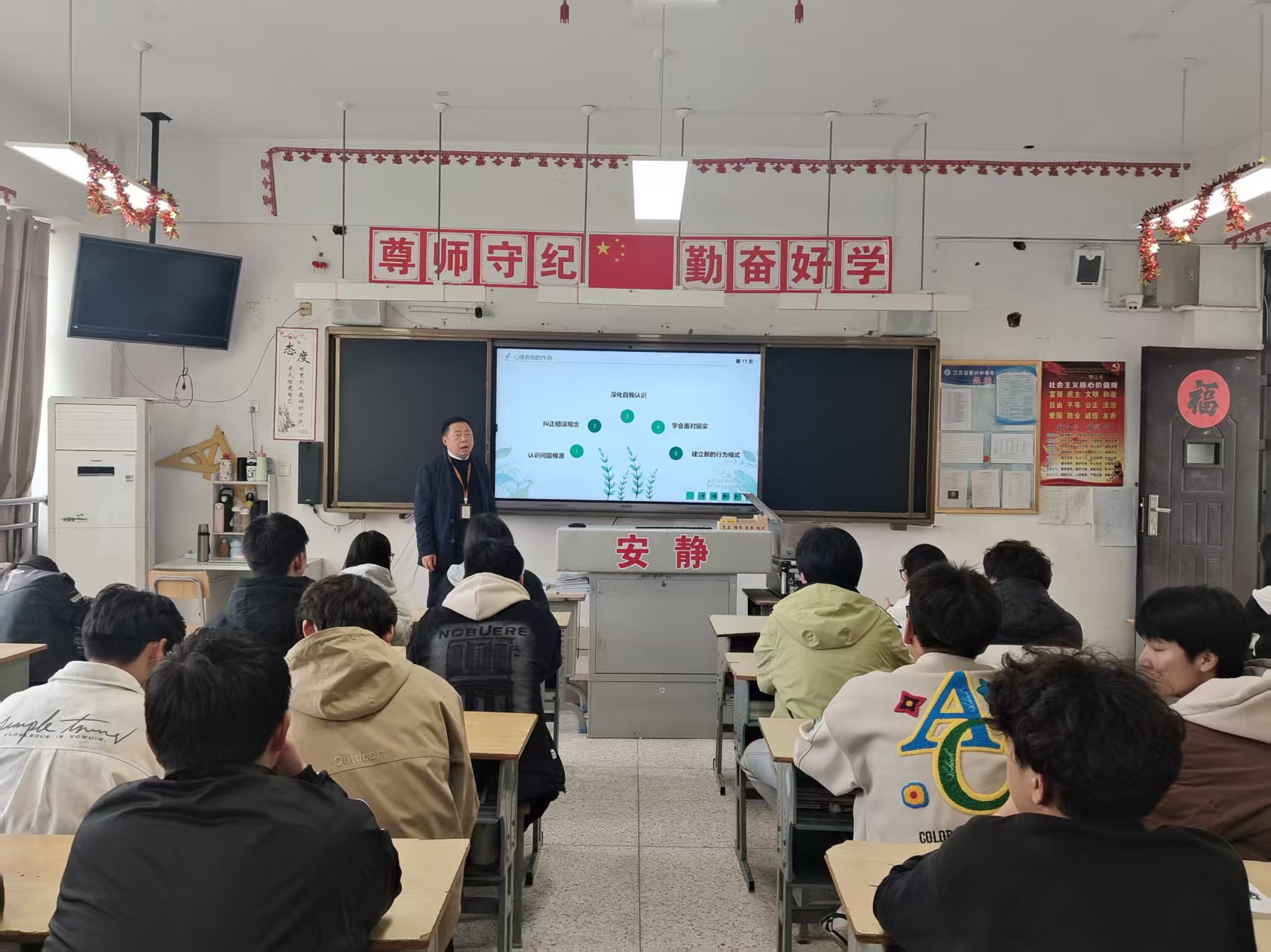 班会重点引导学生培养良好心理品质,做到客观认识自我、积极悦纳自我,学会合理调控情绪,自觉提升抗挫折能力。针对心理困扰,班会明确告知同学们可主动向心理辅导老师或专业机构寻求帮助,并科普 “5・25 全国青少年学生心理健康日”“10・10 世界精神卫生日” 相关知识,强化自我关爱与心理保健意识。
