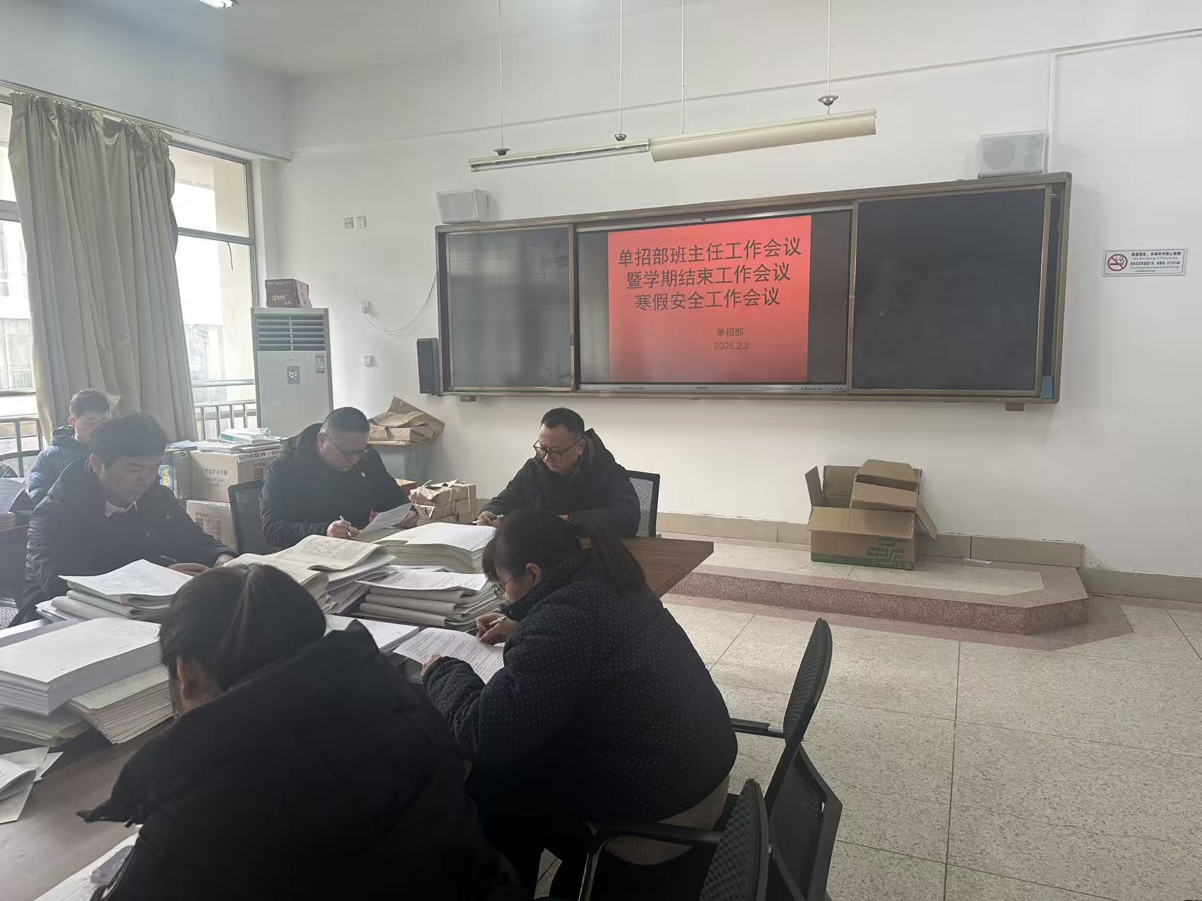 临近学期结束,为筑牢安全防线、规范日常管理、顺利完成学期收尾及假期衔接工作,单招部召开期末班主任工作会议,明确各项工作要求与落实标准,具体内容总结如下: