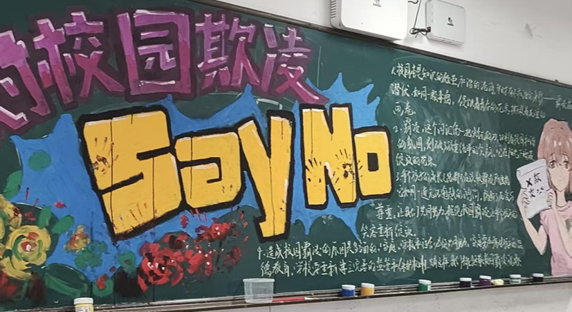 单招部3月份黑板报围绕“校园安全、校园欺凌”主题展开创作,内容需体现校园欺凌的定义以及如何防范和应对校园欺凌。