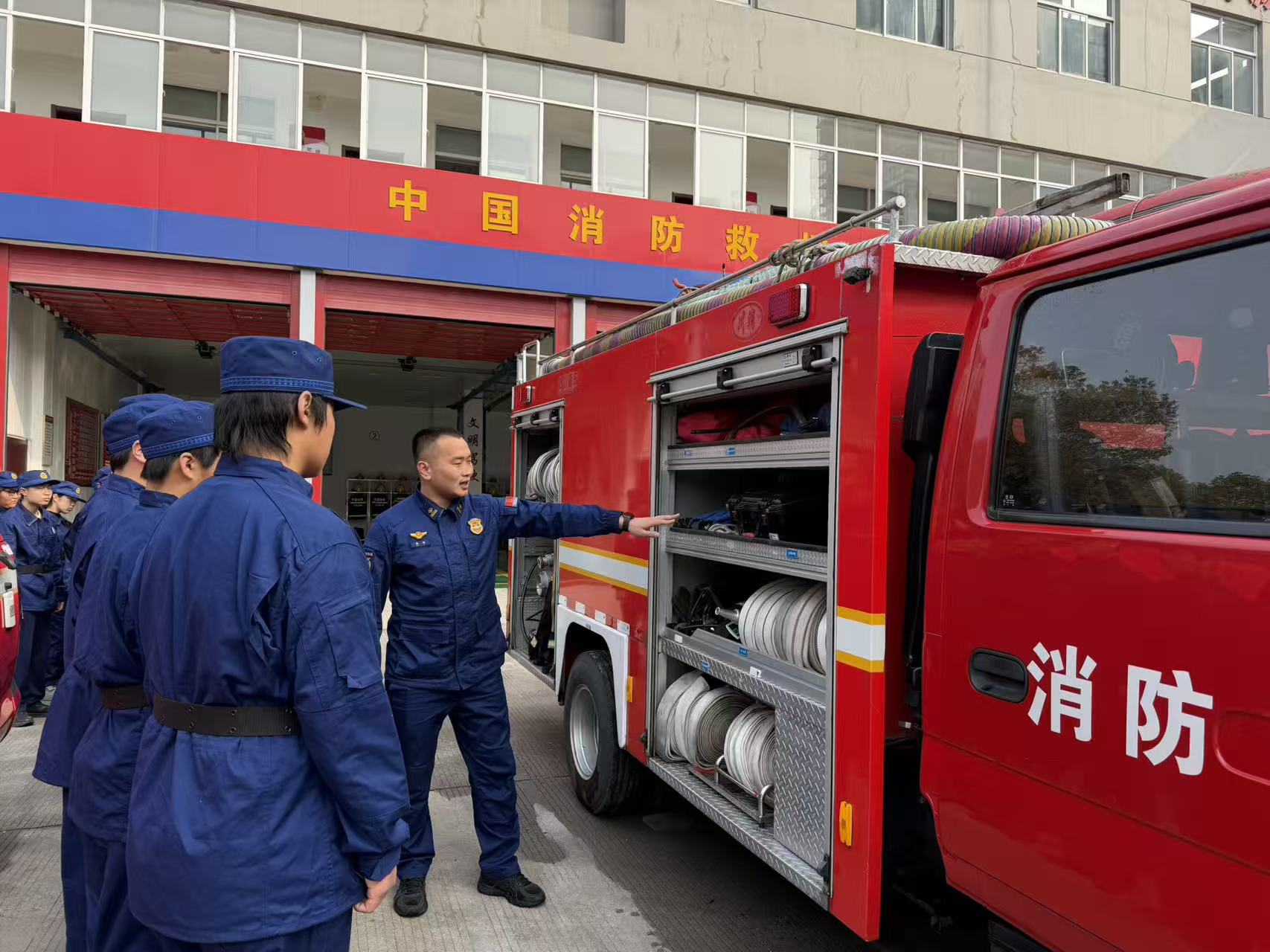 此外,师生们还走进消防员宿舍,学习内务整理规范,参观 “学习园地” 等文化阵地,感受消防队伍严明的纪律作风与浓厚的学习氛围。整洁的内务、规范的物品摆放,让同学们深刻体会到 “细节决定成败” 的职业要求。