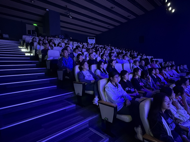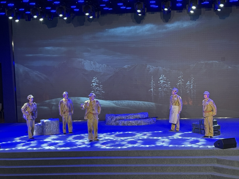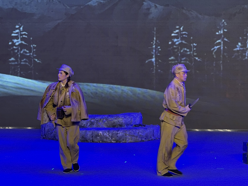 演出当晚,剧场内灯光柔和,座席上老师和同学们整齐就坐,目光聚焦舞台,满是期待。随着音乐响起,淮剧《英雄 1950》正式开演。舞台上,演员们身着具有年代感的军装,以铿锵有力的唱腔、真挚细腻的表演,生动再现了革命战士们在艰苦环境中坚守信念、英勇奋斗的故事。背景大屏上,巍峨雪山、挺立松林的场景与演员演绎相得益彰,将革命先辈们的奋斗场景鲜活地展现在观众眼前,瞬间把大家带入那段峥嵘岁月。
