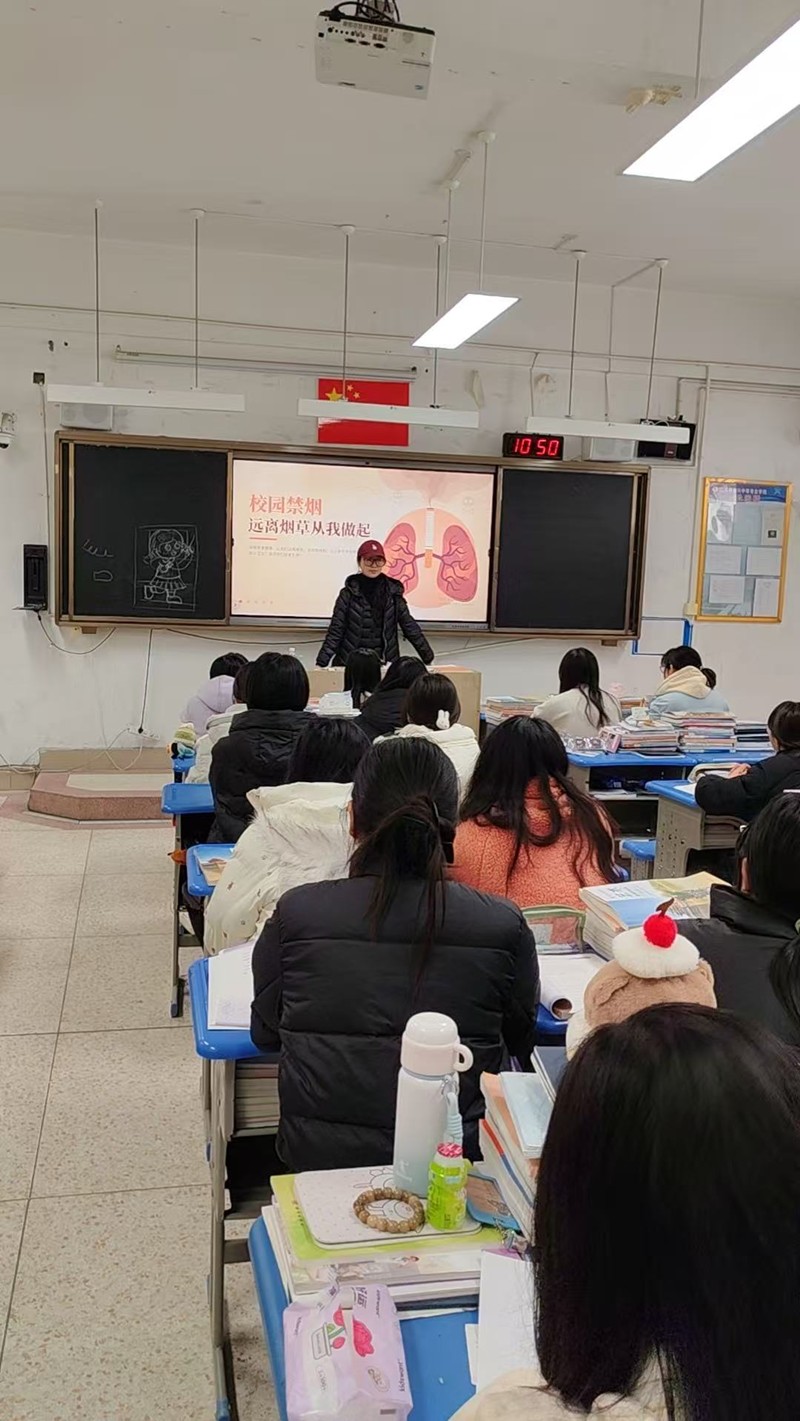 针对当下备受关注的电子烟问题,班主任们重点辟谣了“电子烟能戒烟”“电子烟危害小”等错误说法,明确电子烟并非戒烟神器,其烟液中含有的尼古丁同样具有成瘾性,且部分产品尼古丁实际含量与标识不符,存在更高健康风险,同时电子烟还可能成为青少年接触传统烟草的“通道”,引导学生坚决拒绝电子烟,摒弃“吸食电子烟是时尚”的错误观念。此外,班主任们还向学生普及了《中华人民共和国烟草专卖法》中关于禁止中小学生吸烟的相关规定,介绍了国家及各地开展的青少年控烟专项行动,以及世界各国的控烟举措,让学生知晓控烟不仅是健康需求,更是法律和社会共识。