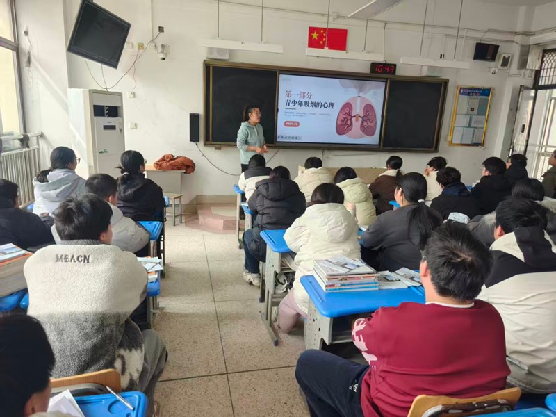 班会伊始,各班主任以PPT讲解为主要形式,从青少年吸烟的心理、香烟的成分及危害、电子烟的潜在风险等方面展开细致讲解。针对青少年群体的身心特点,班主任们深入剖析了好奇心理、从众心理、虚荣心理等成为青少年尝试吸烟的主要诱因,结合游戏型、模仿型等吸烟类型的特点,引导学生认清吸烟背后的错误认知。在讲解烟草危害时,班主任们用直观的数据和案例,介绍了尼古丁的毒性,以及吸烟对青少年呼吸系统、智力、体能发育的严重影响,同时强调了二手烟对孕妇、儿童等群体的伤害,让学生深刻认识到烟草对个人和他人健康的双重危害。