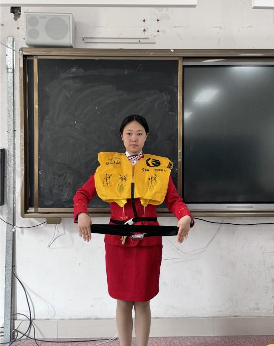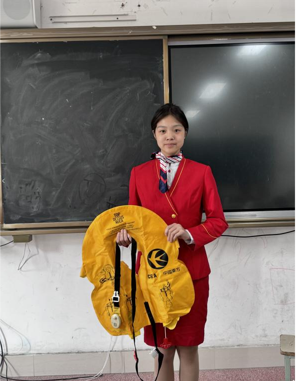 这次安全演示,不仅是一次课程,更是他们未来职业生涯的预演。老师表示:“安全演示是一项关键环节,通过不断练习,学生能将这些操作和知识烂熟于心,未来更好保障旅客安全。”