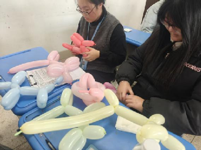 1 月 21 日至 22 日,气球造型制作实训为实训注入了更多创意与活力。作为酒店宴会布置的重要技能,此次实训注重 “基础手法 + 创意组合 + 场景适配”。酒店班学生凭借专业所学的宴会布置知识,在教师指导下讲解气球充气、打结、基础造型(爱心、花朵、小动物)等技巧,分享气球造型在不同宴会场景中的应用逻辑;烹饪班学生则发挥在食材造型中积累的空间想象力与精细操作能力,将烹饪中的 “造型美学” 融入气球创作,大胆尝试复杂造型组合,设计出气球拱门、餐桌摆件、节日主题造型等特色作品。跨专业小组相互学习、分工协作,酒店班学生负责场景规划与基础造型搭建,烹饪班学生参与细节优化与创意延伸,一个个色彩鲜艳、形态各异的气球造型不仅装点了实训场地,更展现了同学们优势互补、协同创新的良好风貌。
