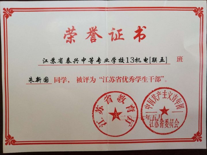 朱新国自2013年9月入学以来,一直遵守学校规定,在思想、学习、生活等方面严格要求自己,虚心好学、积极上进,在老师的指引和同学的帮助以及他自身的努力下,在德智体等各方面取得了很大的进步。在2015、2016、2017年多次被评为校“优秀纠察队员”“优秀学生干部”“优秀学生会干部”。