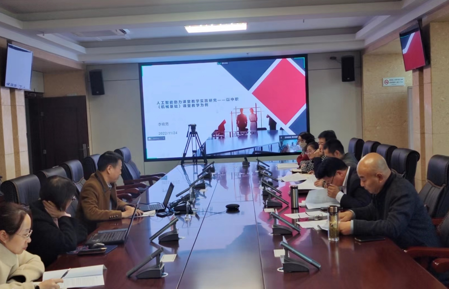 课题研究是教育科研的重要载体,是提高教师教育教学能力的有效途径,更是学校不断革新、积淀成果、提升品质的核心工作。为进一步把握课题研究方向,使课题研究落到实处,11月26日下午,江苏省教育科学“十四五”重点课题《人工智能助力课堂教学实践研究——以中职<机械基础>课堂教学为例》 暨泰州市教育科学“十四五”规划课题《两阶段六步骤教学模式提高学生职场涉外沟通能力》开题论证会在我校举行,学校副校长周勇致欢迎词,课题组全体老师参加。