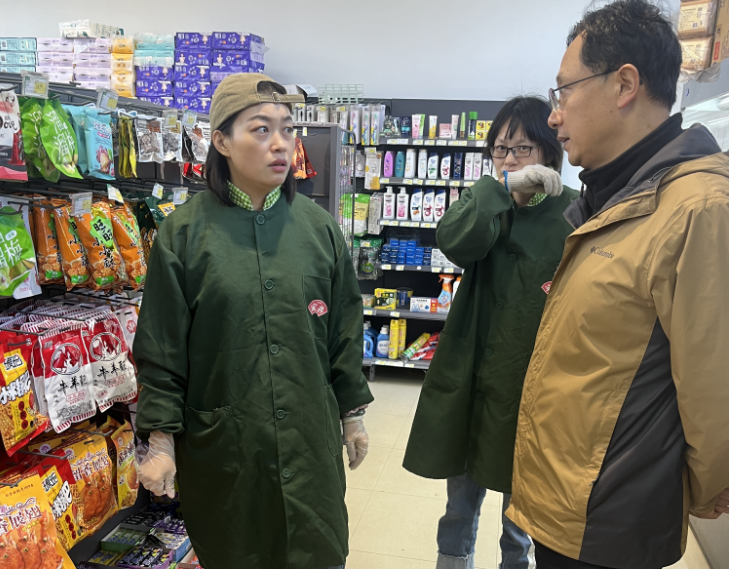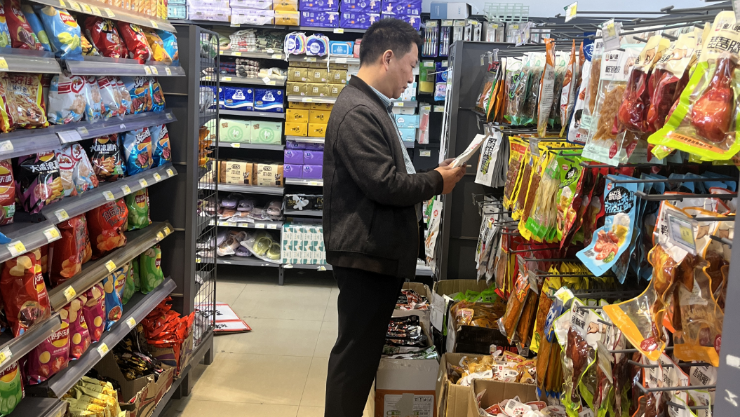 随后,巡查人员前往学校超市。巡查人员详细检查了货架上的食品,特别关注产品的保质期和标签信息,并提醒他们在后续管理中加强对过期食品的监控。