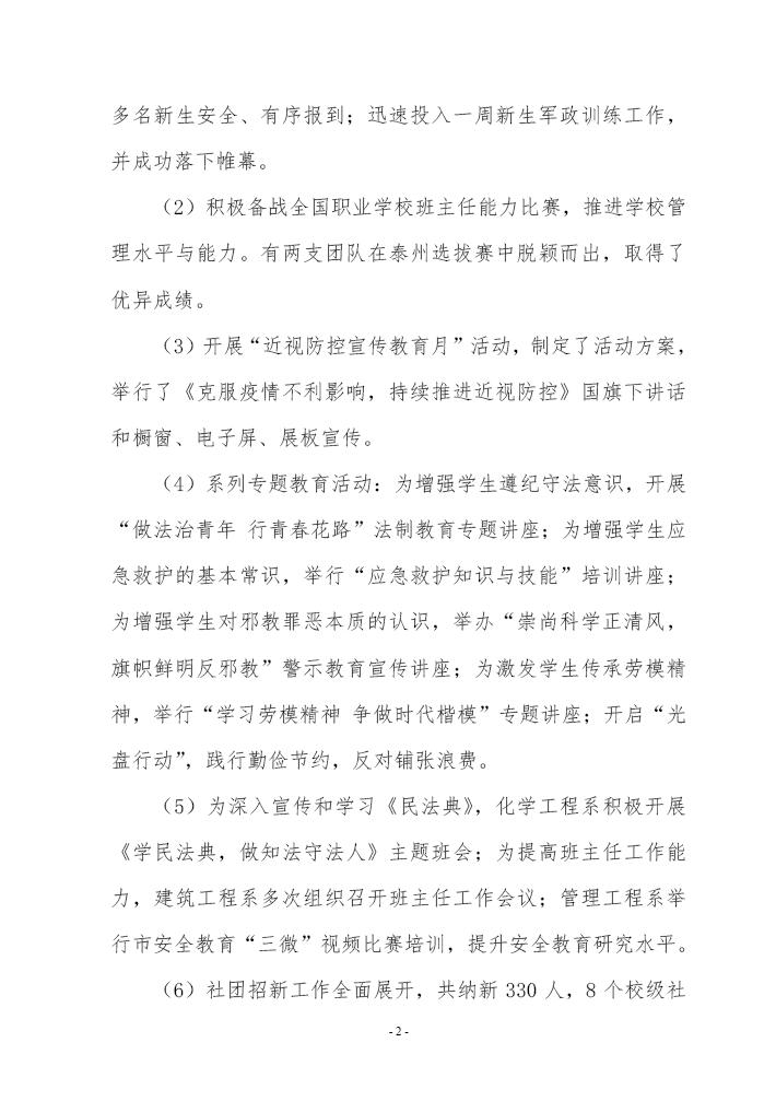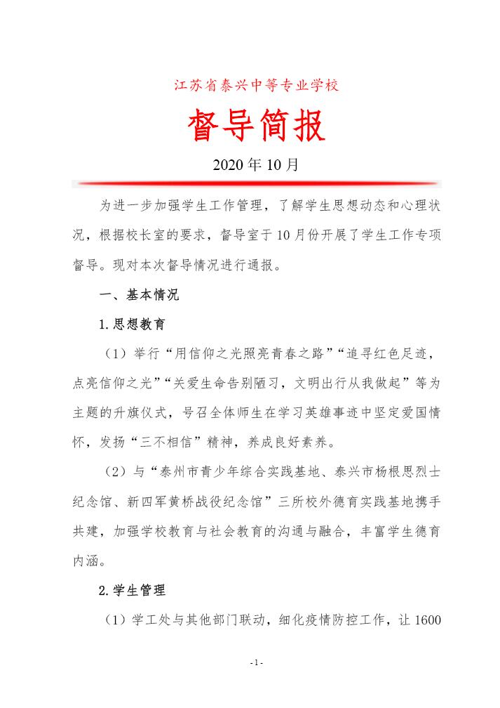 2020年秋学期学工管理督导简报
