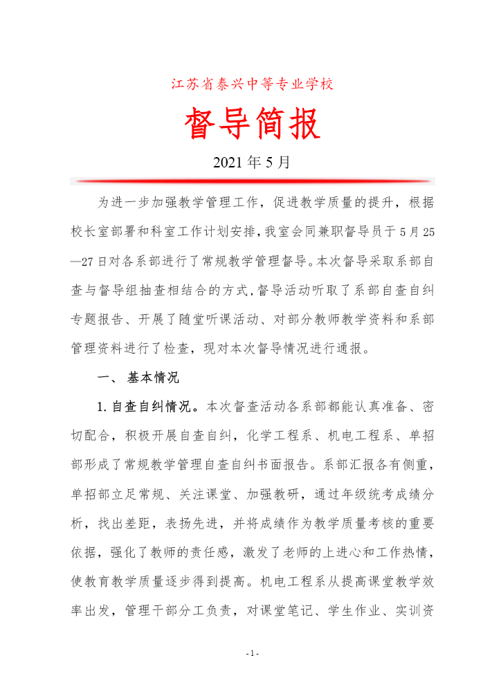 2021年春学期常规教学管理督导简报