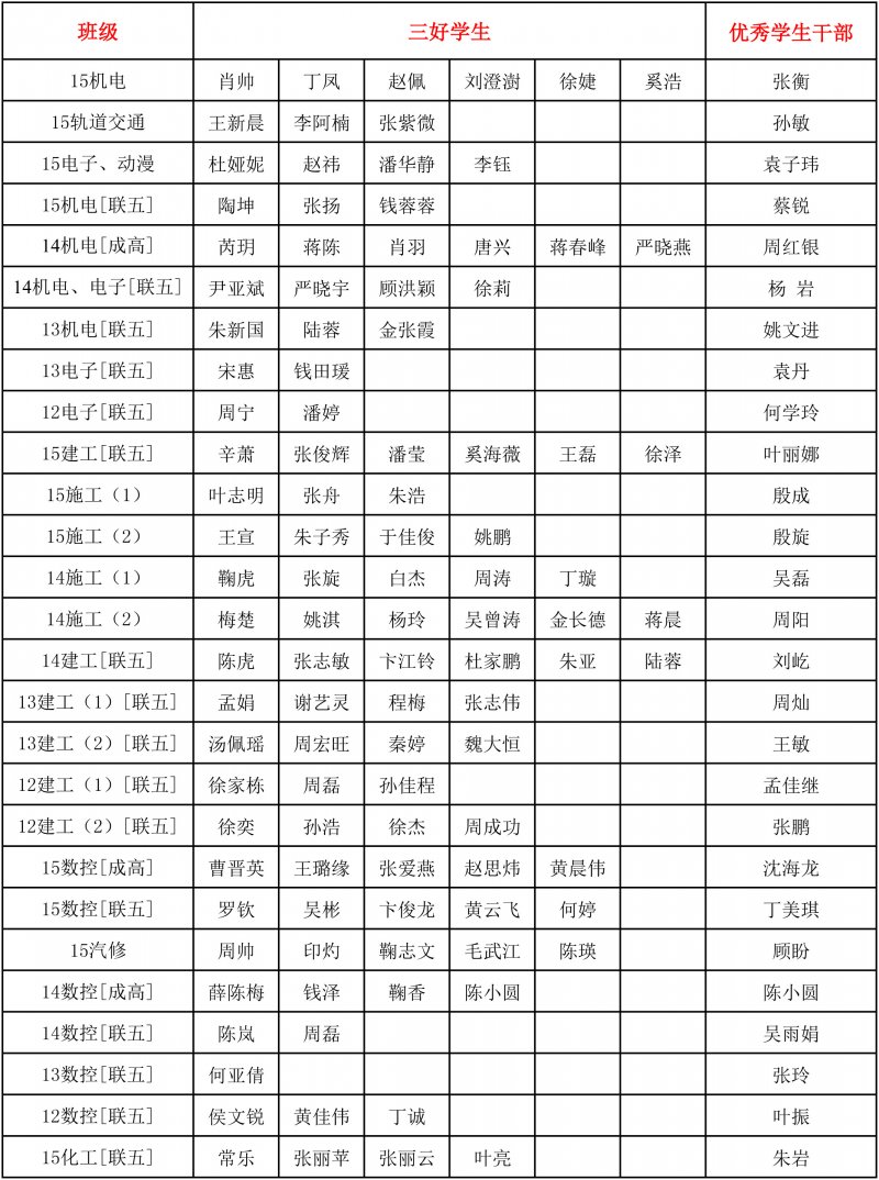 各系部、班级: 在2015—2016学年第一学期,全校学生勤奋学习科学文化知识,苦练专业技能,在德、智、体诸方面取得了较好的成绩,涌现出一批品学兼优的学生。为表彰先进、树立典型,充分调动广大在校学生的学习积极性和主动性,在各班评选的基础上,学校决定对肖帅等“三好学生”和张衡等“优秀学生干部”进行表彰。 希望受表彰的同学谦虚谨慎、戒骄戒躁,以更高的标准要求自己,不断进取,在今后的学习中,取得更大的成绩。全校学生要以他们为榜样,向他们学习,努力在各方面取得更大的进步。