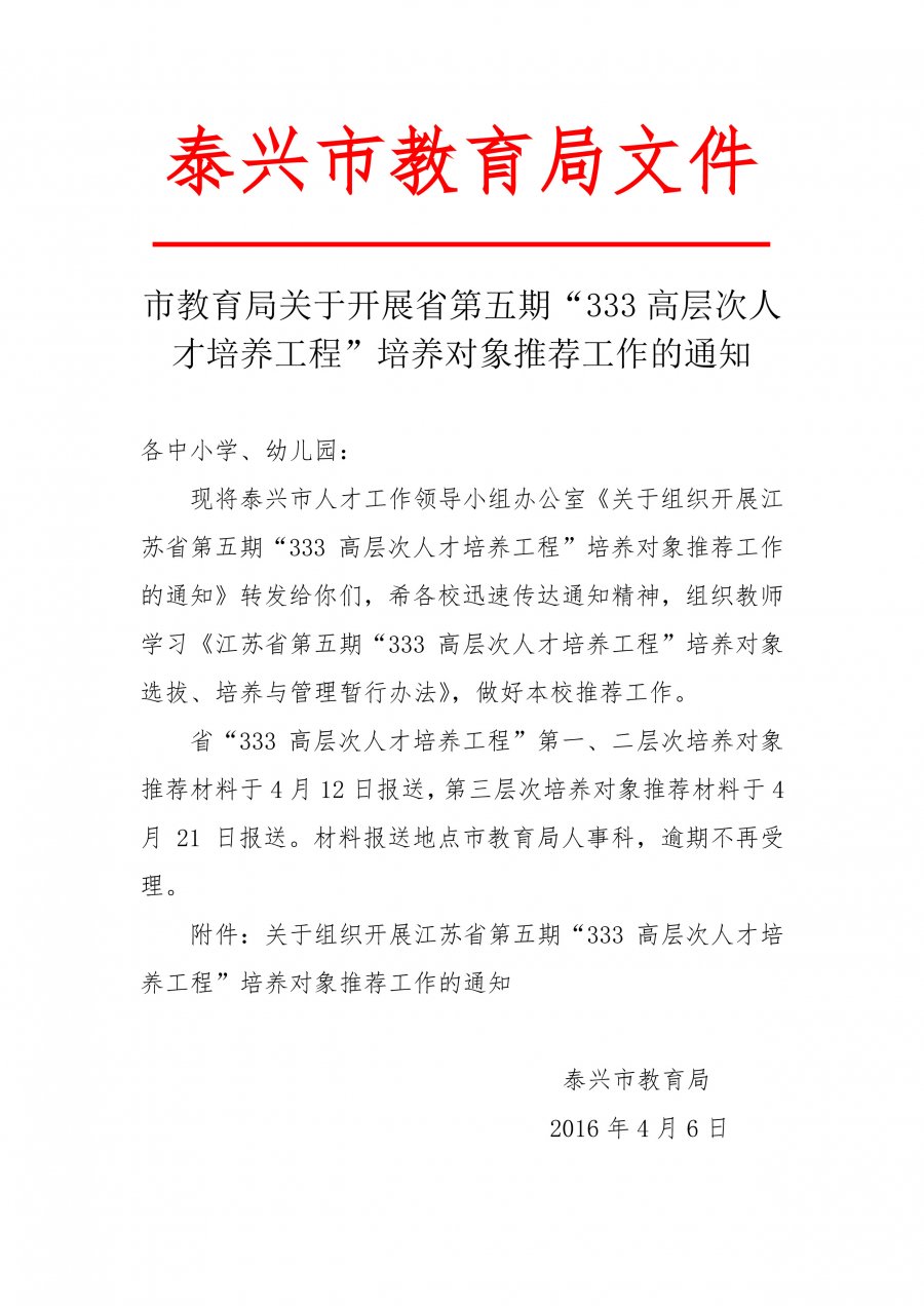 关于开展省第五期“333高层次人才培养工程”推荐工作的通知