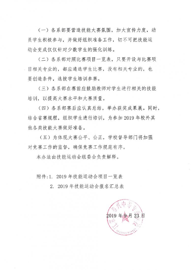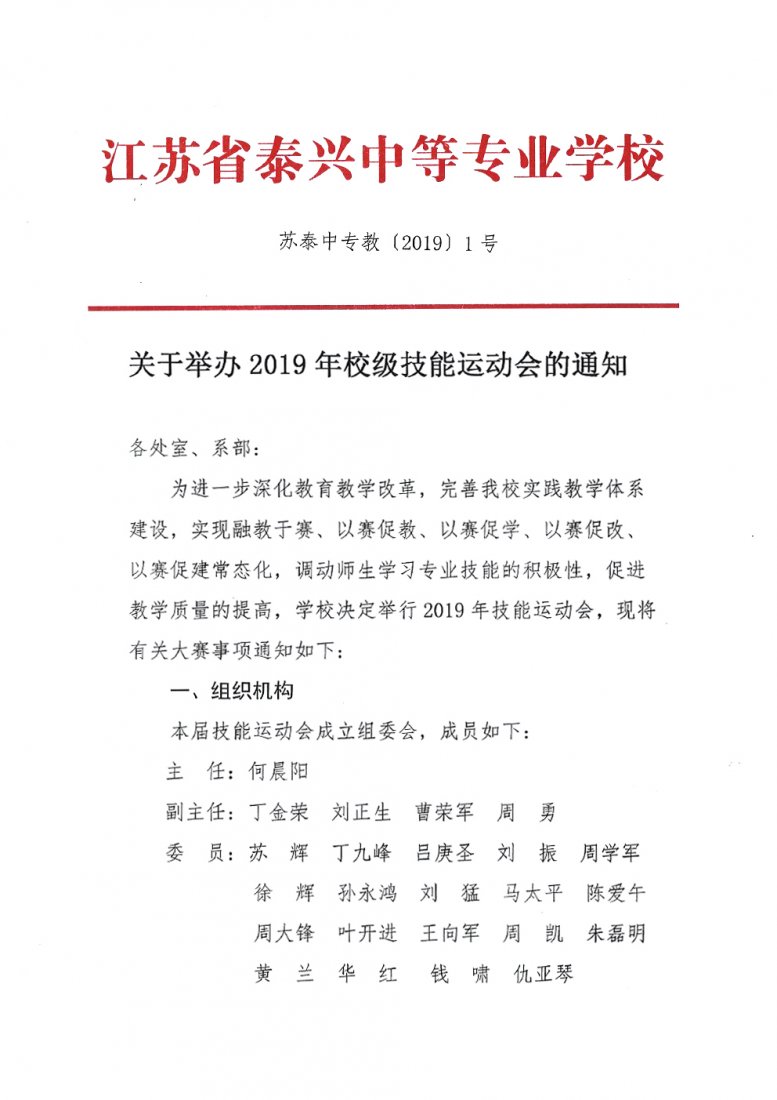 关于举办江苏省泰兴中等专业学校2019年技能运动会的通知