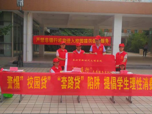 9月12日下午,泰兴市地方金融监管局联合中国工商银行泰兴支行,组织10余名工作人员深入我校开展警惕“校园贷”“套路贷”陷阱,提倡学生理性消费现场宣传教育活动。