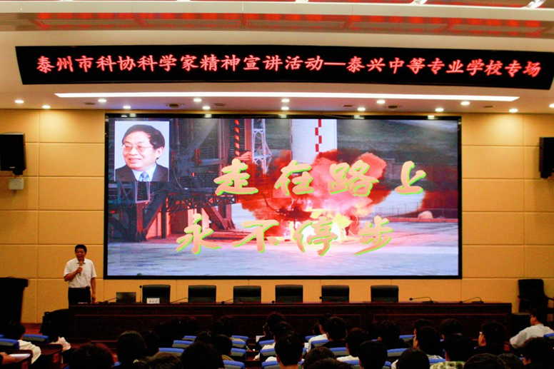 活动伊始,泰兴市科协副主席李正峰为学校赠送书籍《泰兴院士》。该书由市科协牵头编辑出版,记录了丁舜年、王德宝、常印佛、王德滋、叶培建等泰兴籍10位院士的典型事迹,展示了他们勇于创新的科学精神、严谨求实的治学风范和淡泊名利的人生态度。