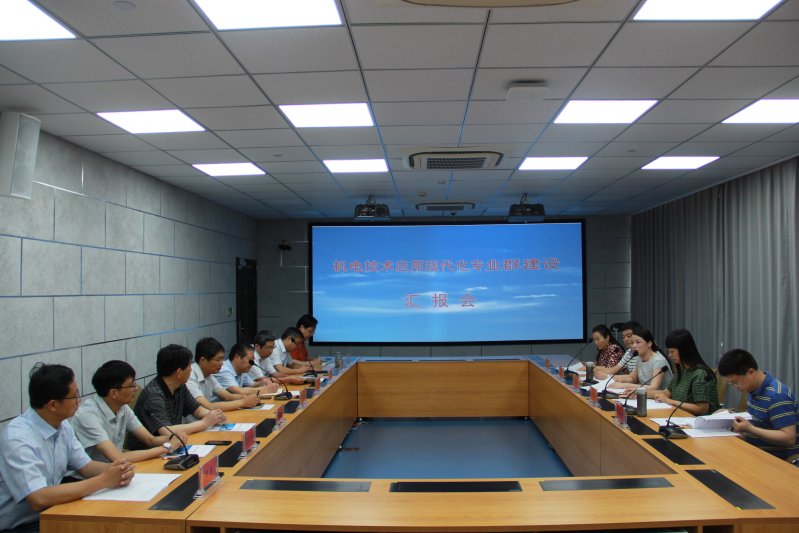 汇报会上,曹荣军副校长首先将我校“十三·五”以来创建省现代化专业群的整体概况作了介绍,然后对机电技术应用专业群的建设情况作专题汇报。他从专业群构建体系、人才培养模式、课程体系构建、教学团队建设、实训基地运行、建设成效、特色创新等方面作了详细汇报。 专视导组家认真听取了工作汇报后,实地考察了该专业群实验实训中心,深入课堂听取了该专业群专任教师3节课;查阅了专业群建设的相关资料,并分别与专业群负责人、专业负责人、课程负责人和学生代表进行了访谈。