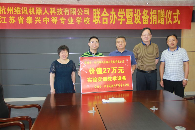 6月29日,学校与杭州维讯机器人科技有限公司举行了联合办学签订仪式暨教学设施设备捐赠仪式。公司总经理申屠美良、营销总监余建姣、学校副校长刘正生、何晨阳出席仪式。仪式由机电工程系主任陈爱午主持。