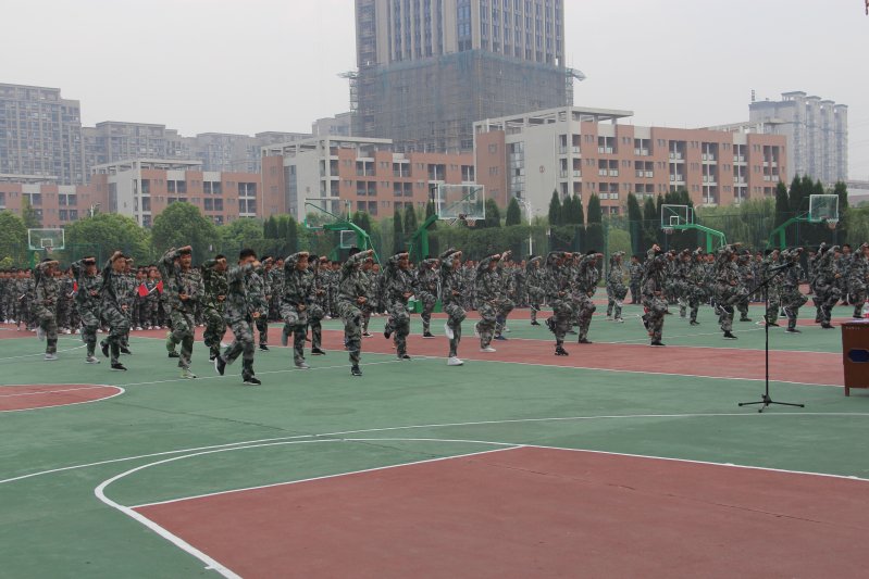 9月6日上午,我校2018级新生军训验收汇报大会在篮球场隆重举行。泰兴市济川街道人武部钱雪峰部长、泰兴市教育局叶海林科长、李华科长及校领导班子等出席汇报大会。大会由学工处吕庚圣主任主持。 大会在雄壮的国歌声中隆重开幕,刘正生副校长首先作国旗下讲话。他代表学校向几天来辛苦奋战在训练一线的教官们表示衷心的感谢,向坚守在训练现场的班主任们致以诚挚的问候,向不怕疲劳、顽强拼搏的同学们表示热烈的祝贺。同时,他希望同学们把军训中汲取的精神力量转化为吃苦耐劳的意志和立志成才、报效祖国的动力,在今后的学习生涯和人生道路中,保持军训的干劲,发扬军人的作风,以军人的意志、军人的气魄、军人的精神去面对各种挑战,无愧于青春,无愧于这个伟大的时代。 随后,举行列队会操演练。受训方队展示了立正、稍息及跨立站姿、停止间转法、敬礼、齐步走、跑步等基本军事动作。他们端正统一的军容、整齐划一的步伐、铿锵有力的口号、英姿飒爽的精神风貌,充分展示了我校学子特有的激情与风采。 接着,在教官的指挥下同学们齐唱革命歌曲。同学们用磅礴的气势和铿锵有力的歌声,再现了昔日激情燃烧的岁月,表达了始终牢记使命,时刻准备战斗的军人情怀。在军政理论测试中,同学们准确快速回答部长提出的问题,充分发挥了自己的综合素质、应用技能和内在潜力。 最后,丁金荣副书记宣读了2018级军训工作优秀班主任和优秀学生的表彰决定。
