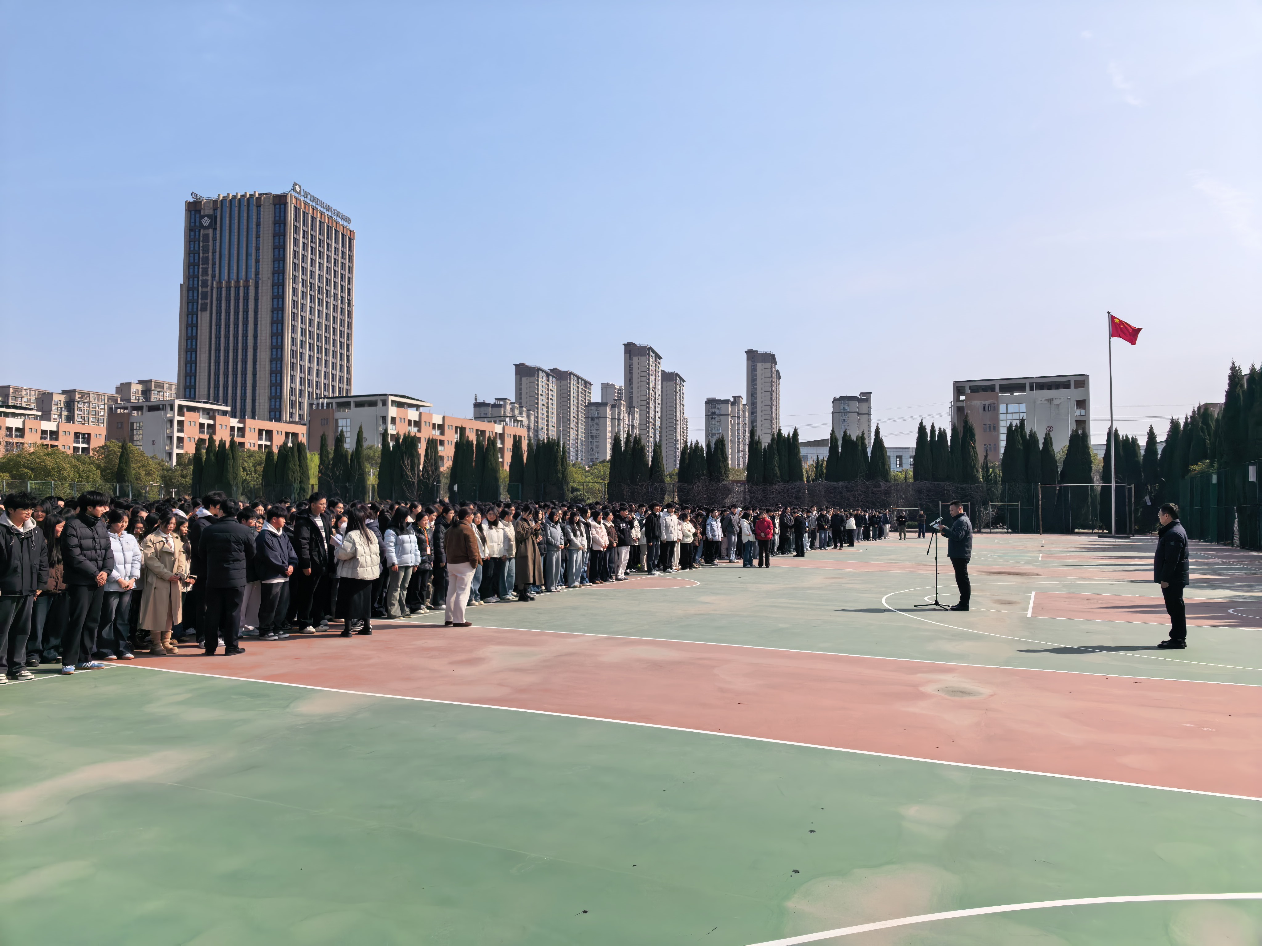春和景暖,草木新生。3月9日上午,我校2026年春学期开学典礼暨第一次升旗仪式在校篮球场如期举行。全体师生身齐聚操场,沐晨光而行,怀初心致远,共同开启新学期的崭新征程。