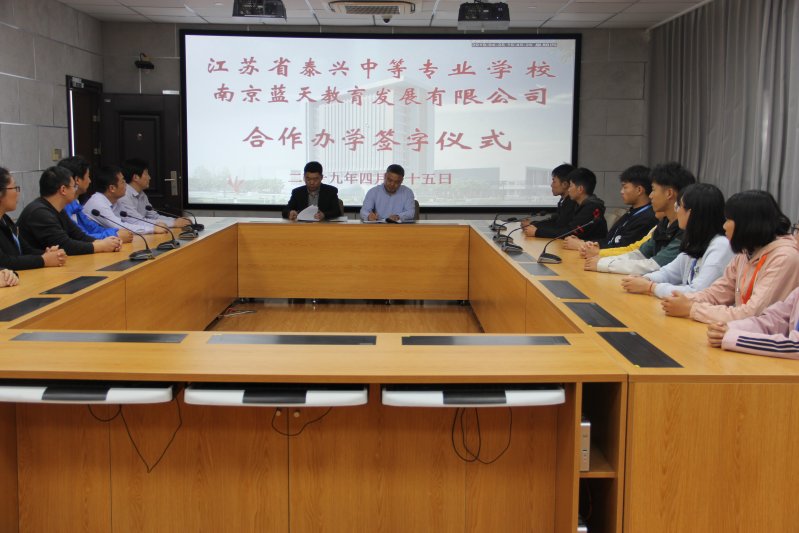 4月25日下午,我校与南京蓝天教育发展有限公司就共同开设航空服务专业,举行了合作办学签字仪式。 为实施更好的合作,校企双方就共同制定航空服务专业人才培养方案、共同进行教育教学管理、共同投资新建实训基地等合作办学事项达成高度一致。双方商定,待条件成熟时双方可共建混合所有制二级学院“江苏省泰兴中等专业学校蓝天民航学院”,拓展高速铁路客运乘务、国际邮轮乘务管理、空中安全保卫、民航安全技术管理、机场运行、民航运输等专业合作。 与该公司的合作是今年继我校与浙江德悦酒店管理有限公司、泰州智德电子商务有限公司实施紧密合作的又一成功典范。构建校企融合平台,推进校企协同育人机制是今后我校推进教育教学改革、完善人才培养机制的重要方向,学校将进一步开阔视野,主动对接企业,走校企深度融合之路,为社会培养更多的技术型、实用型人才服务。