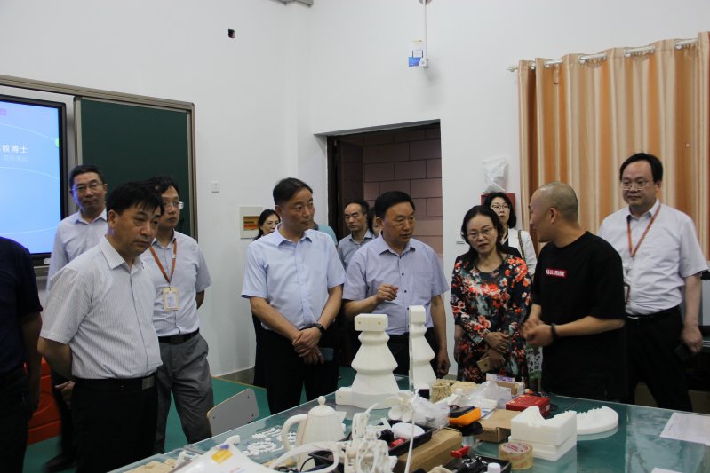 在数控实训车间和3D打印室,考评组一行饶有兴趣地参观了学生实际操作和学生作品,详细询问了学校实验实训设备配置情况。孙其松督学勉励学生要紧跟形势,努力学习技能和新技术,适应时代发展要求,做一名高素质的劳动者和技术技能人才。