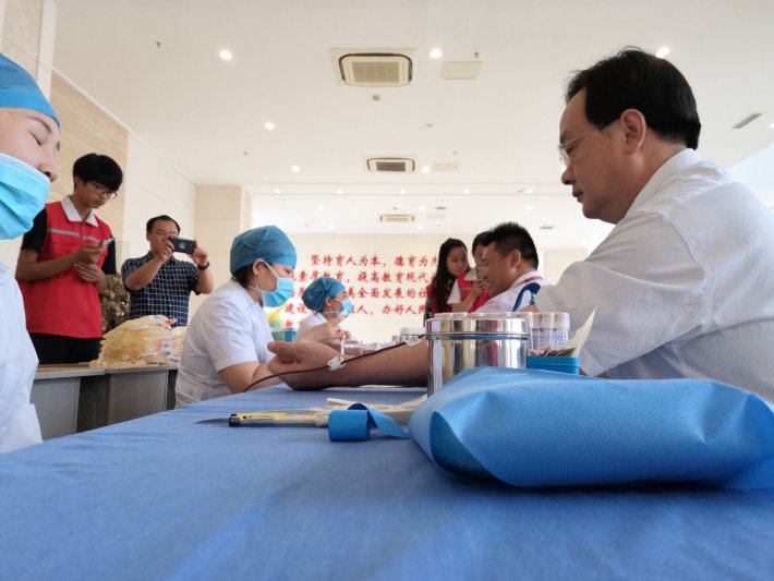6月18号,我校红十字会组织师生在学校行政大楼进行了无偿献血活动。广大师生积极热情参加,为无偿献血事业奉献出了自己的微薄之力。 天空虽然下着雨,但这也无法阻挡师生们的献血热情。当日上午8时许,在何晨阳校长的带领下,老师同学们有序地排起了队伍,依次进行信息登记、血液类型检验、静脉采血等环节。等待献血期间,同学们紧张而兴奋,老师则是相对地稳重,其中更是不乏参加过好几次献血的老师同学,但是他们依旧为自己的行动能够帮助他人,挽救更多的生命而感到高兴。 全校广大师生奉献爱心,热情参与,不仅弘扬了救死扶伤、乐于助人的精神,也充分体现了我校师生以爱心温暖校园,以真情奉献社会,以热诚回报祖国的崇高思想品德,成为一个有责任的“好公民”。