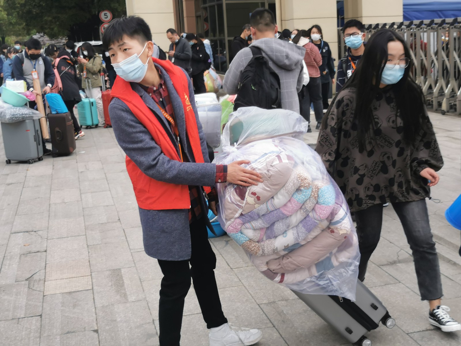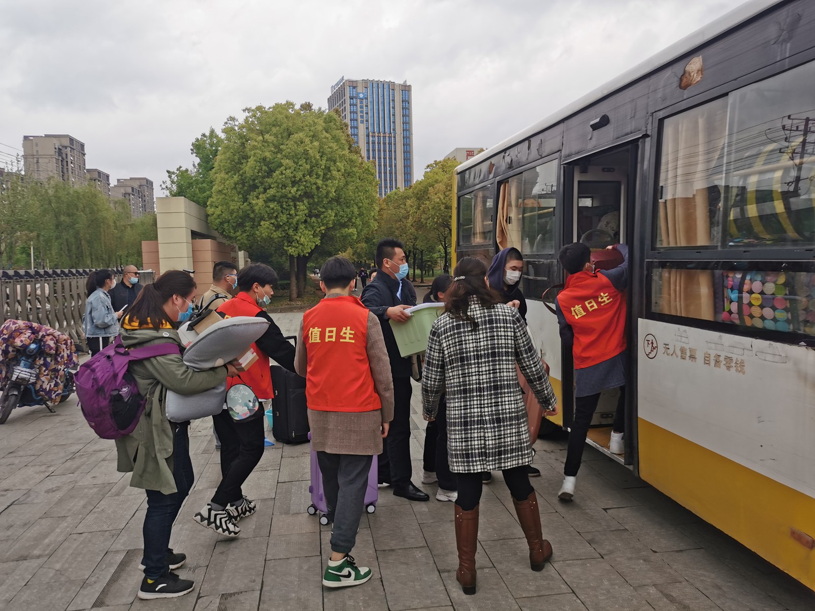 根据疫情防控要求,学生返校后要进行封闭式管理,家长不允许进入校园,学校经过仔细谋划,安排了志愿者,并租用了4辆公共汽车帮助学生接运行李。可天公不作美,时而刮起一阵大风,时而阴云密布,时而落下几颗雨点,使每个家长的心都揪着。由于学生们携带的物品较多,这时,学校教师们便和志愿者一同主动帮助住宿生搬运行李。他们从下午12:30干到4:30分,一直在与时间赛跑,他们虽然累得声嘶力竭,但教师们和志愿者的行动让学生们倍感温暖,也让家长感到安心,确保了学生返校复课安全有序的进行。