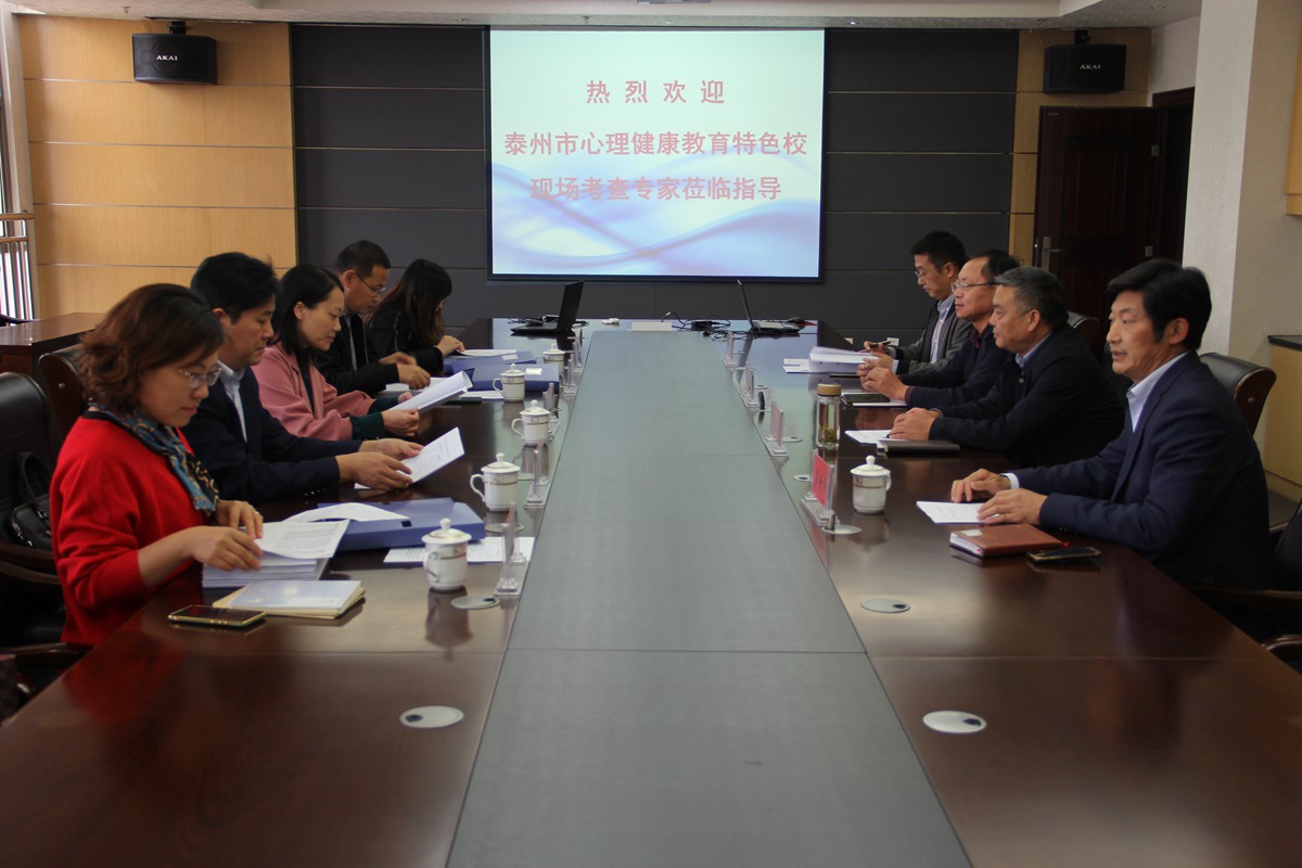11月5日下午,泰州市教育局基教处陆全贵副处长一行5人莅临我校,对我校创建泰州市心理健康教育特色学校进行现场考查评估。泰兴市教育局德育科科长叶海林,学校副校长刘正生、学工处主任吕庚圣等人陪同。