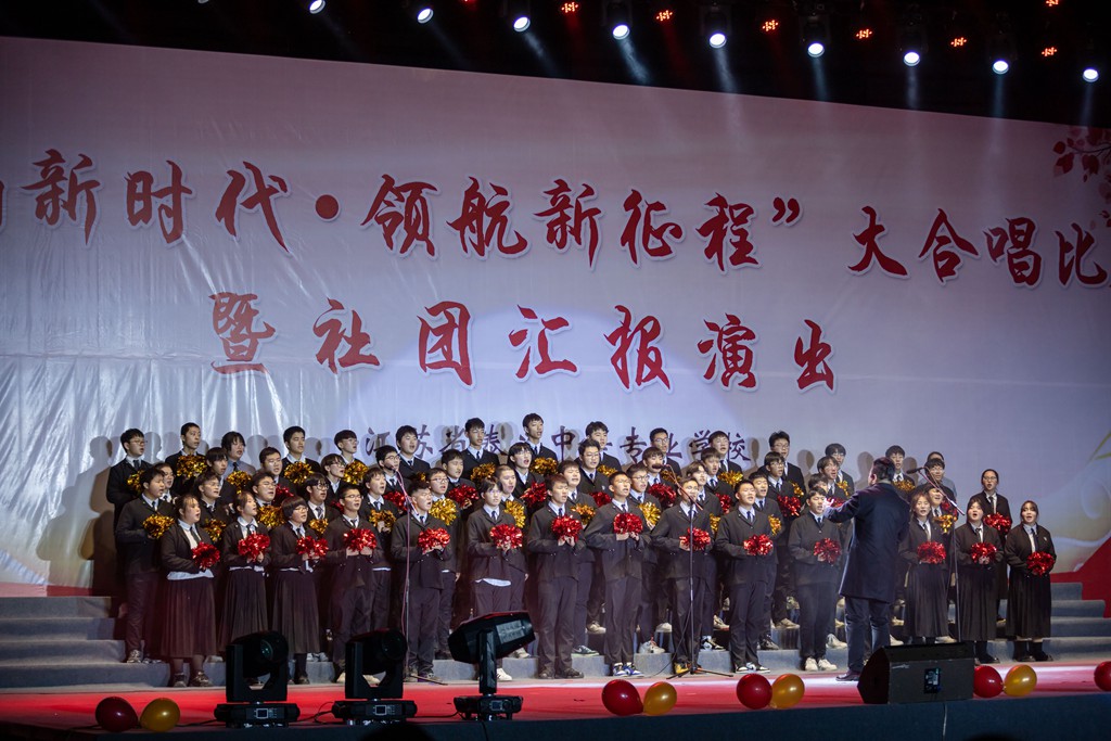 12月31号下午,我校在市体育中心举办了“唱响新时代 领航新征程”大合唱比赛暨社团汇报演出,来迎接2021年的到来。校长何晨阳,校党委副书记丁金荣,副校长刘正生、周勇等校领导和4000多名师生共同参加活动。