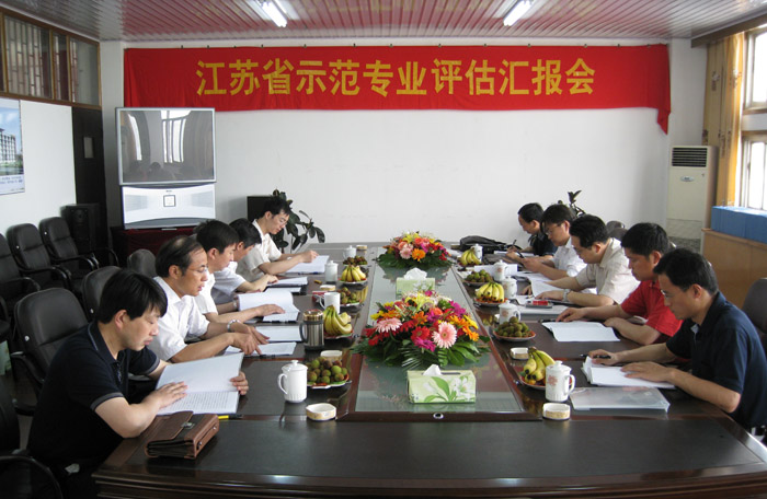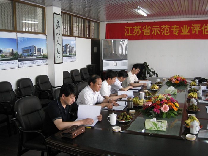 5月29日上午,省示范专业评估专家组在泰州市职社处陆庆江老师的陪同下,前来我校视导电子电器应用与维修专业创建省新一轮示范专业工作情况。 在三楼会议室,朱留荣校长向专家组简要介绍了我校的现状和新校区的建设情况,张日恒副校长向专家组汇报了我校电子电器应用与维修专业创建省新一轮示范专业的情况。专家组查阅了相关资料、访谈了专业负责人、察看了实验实训室、听取了有关老师的上课情况,对我校的创建工作进行了充分的肯定。 出席会议的还有市政府周桂香副市长、泰兴市教育局毛华平局长、泰兴市教育局职教科肖春华科长等人。
