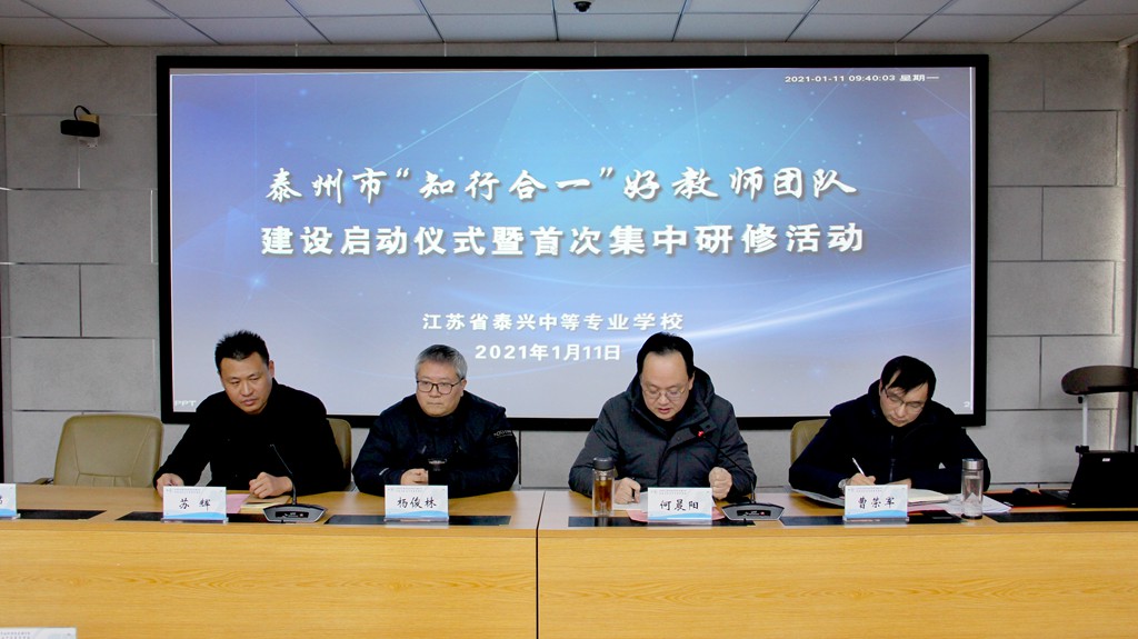 1月11日上午,我校“知行合一”好教师团队建设启动仪式在综合楼11楼会议室成功举行。泰州学院教务处处长杨俊林、我校校长何晨阳、“知行合一”好教师团队领衔人曹荣军副校长及所有成员参加仪式。仪式由校办室主任苏辉主持。