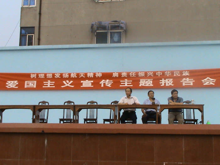 2008年9月22日下午,爱国主义教育义务宣讲员袁维儒同志在我校大操场为师生4000多人举行一场题为《树理想发扬航天精神,肩责任振兴中华民族》的爱国主义宣传主题报告会。报告会气氛热烈,全体到会人员不断为袁维儒同志的精彩报告鼓掌。报告会在全体师生中产生共鸣,全体同学深受教育和感染。到会的校领导有张日桓副校长、刘正生校长助理。
