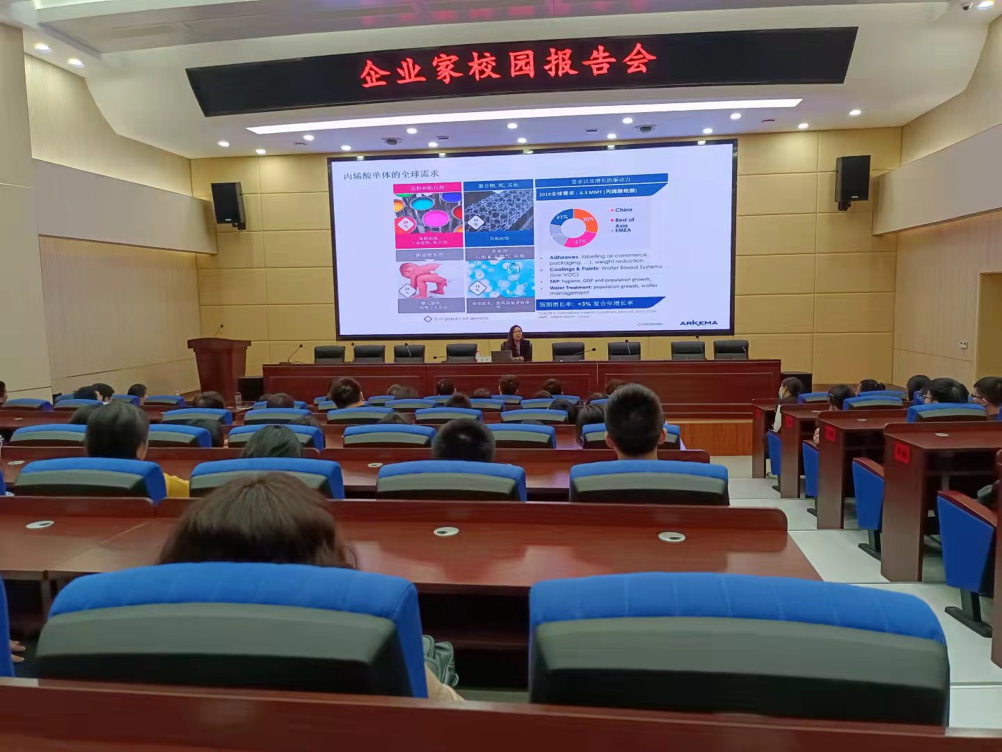 10月14日下午,阿科玛泰兴工厂(泰兴昇科化工有限公司)人事行政经理陈芹女士应邀来到我校,为我校2022届毕业生做了题为《培养职业精神,争创现代工匠》的专题报告,将当今企业对员工精神的要求和自己成功的经历与大家做了分享。