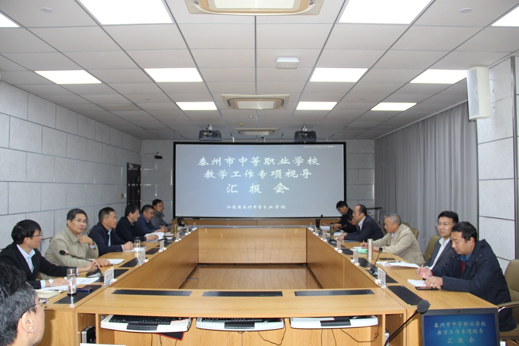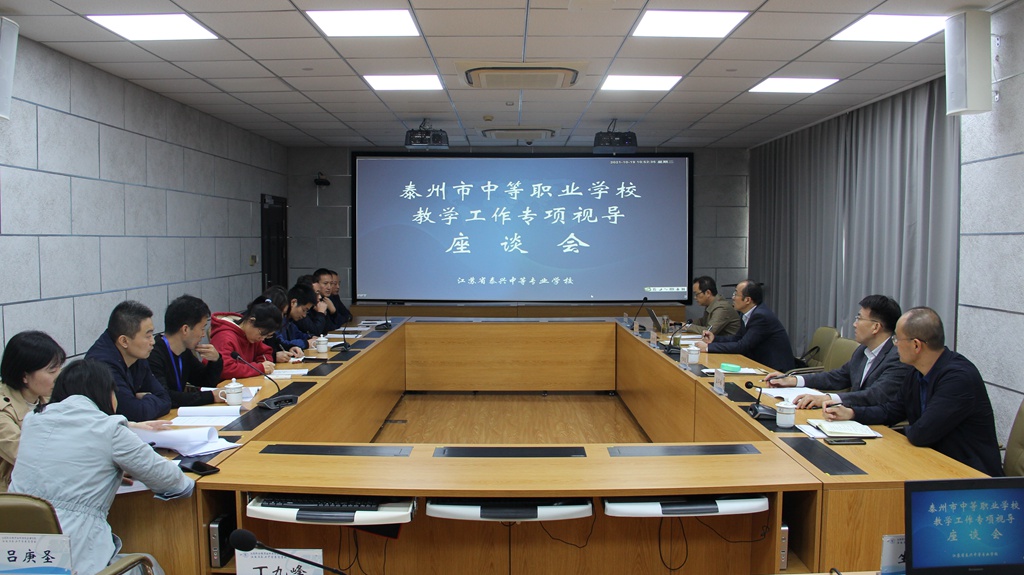 为进一步规范全市中等职业学校教育教学行为,了解职业学校课堂教学管理质态,及时发现问题,提出整改措施,强化教育教学常规管理,促进教学质量提升,提高人才培养质量。10月19号上午泰州市专家视导组莅临我校进行教学工作专项视导,视导组成员包括江苏农牧科技职业学院农业工程学院翟旭军院长、江苏农牧科技职业学院杭瑞友教授、靖江中等专业学校徐刚副校长、泰州机电高等职业技术学校孟华峰副校长、江苏省高港中等专业学校孙小建副校长和泰州市教育局季恺联络员。