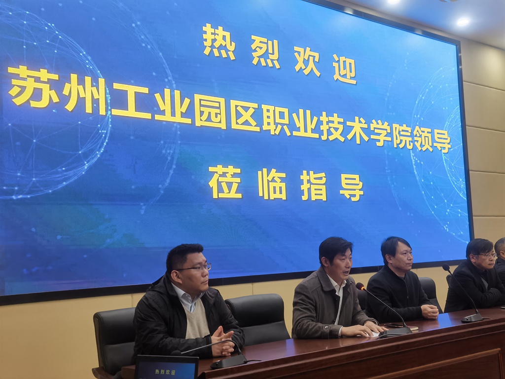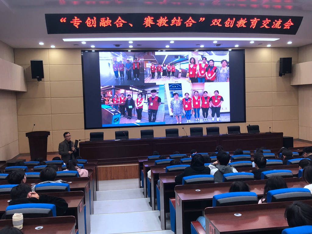 为推进我校创新创业教育教学改革,引领和带动创新创业教育工作取得新成效,2021年11月23日下午,苏州工业园区职业技术学院副院长孙耀坤带领该院教学管理部、职业发展中心、机电系、工商管理系等部门负责人来我校开展“双创”教育教学交流活动。会议由学工处主任吕庚圣主持,我校副校长刘正生、“双创”教育中心教研组的全体老师和一百多名学生参加了今天的活动。