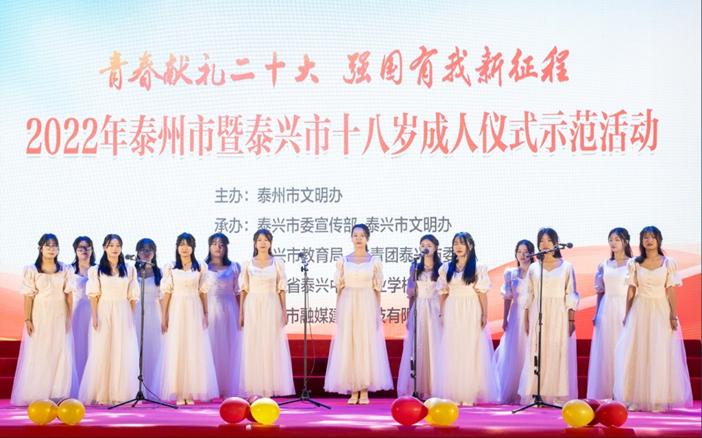 12月2日下午,我校在市体育中心举行了“青春献礼二十大 强国有我新征程”泰州市暨泰兴市十八岁成人仪式示范活动。我校19、20级学生参加仪式。