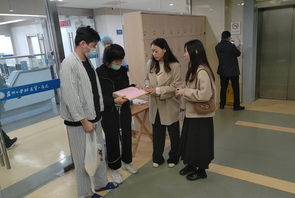 4月3日,学校团委书记杨巧珍、22数控2班班主任成双和学生代表前往苏州大学附属第一医院探望吴成浩同学,并将师生捐款共计45000元交到家长手中。